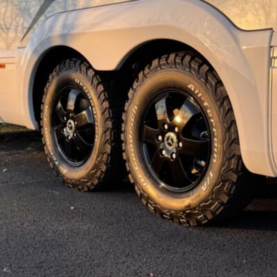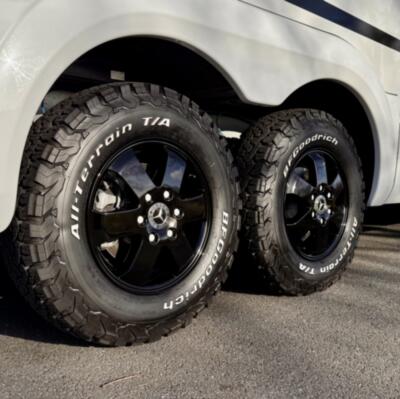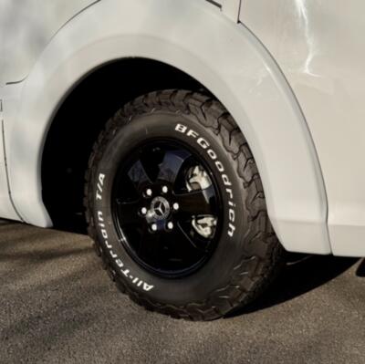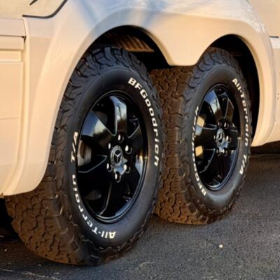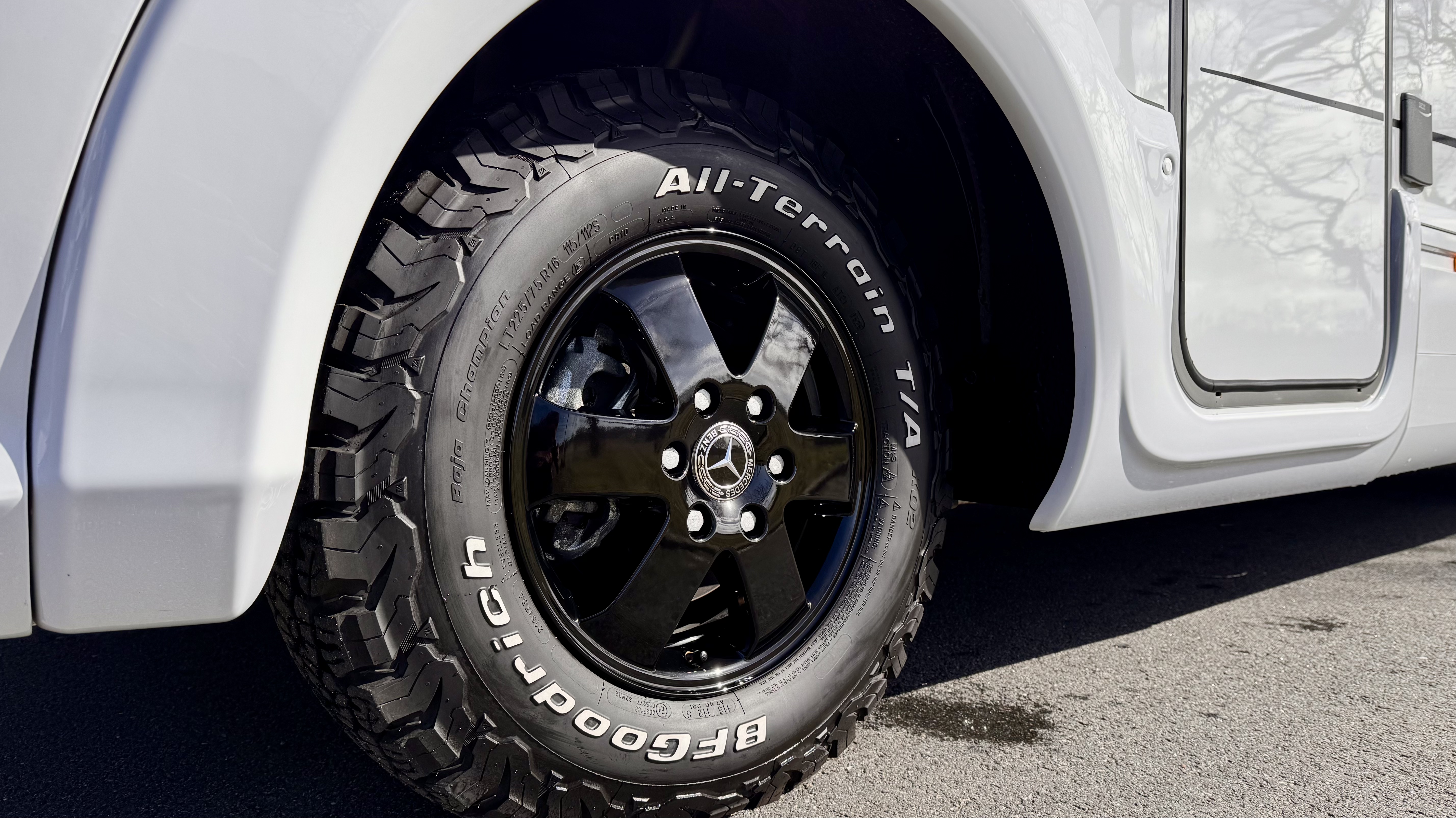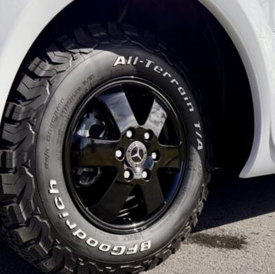 Svarta 16" aluminiumfälgar med BF Goodrich All-Terrain däck (18 000kr)Även godkända för vinterkörning.