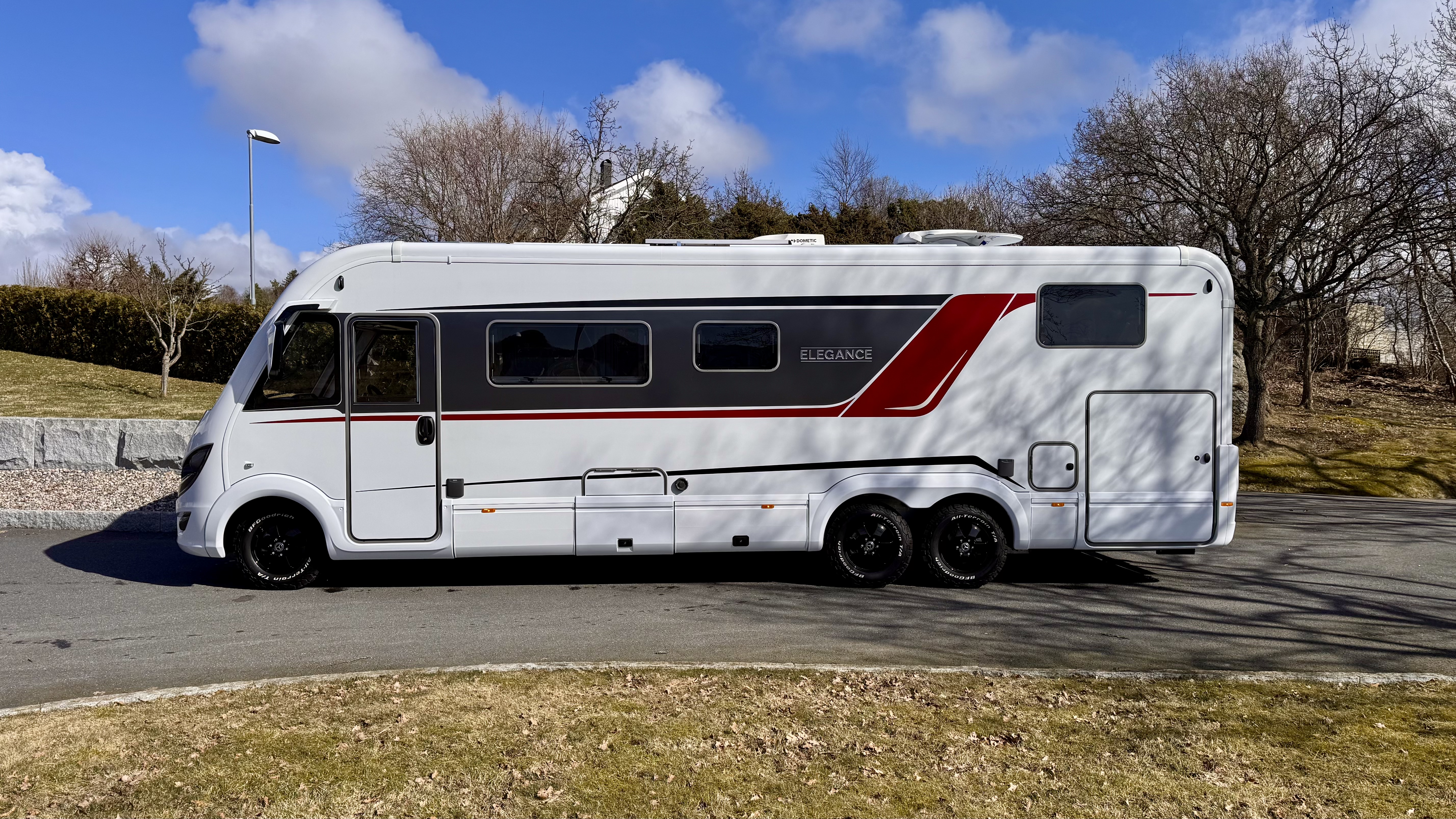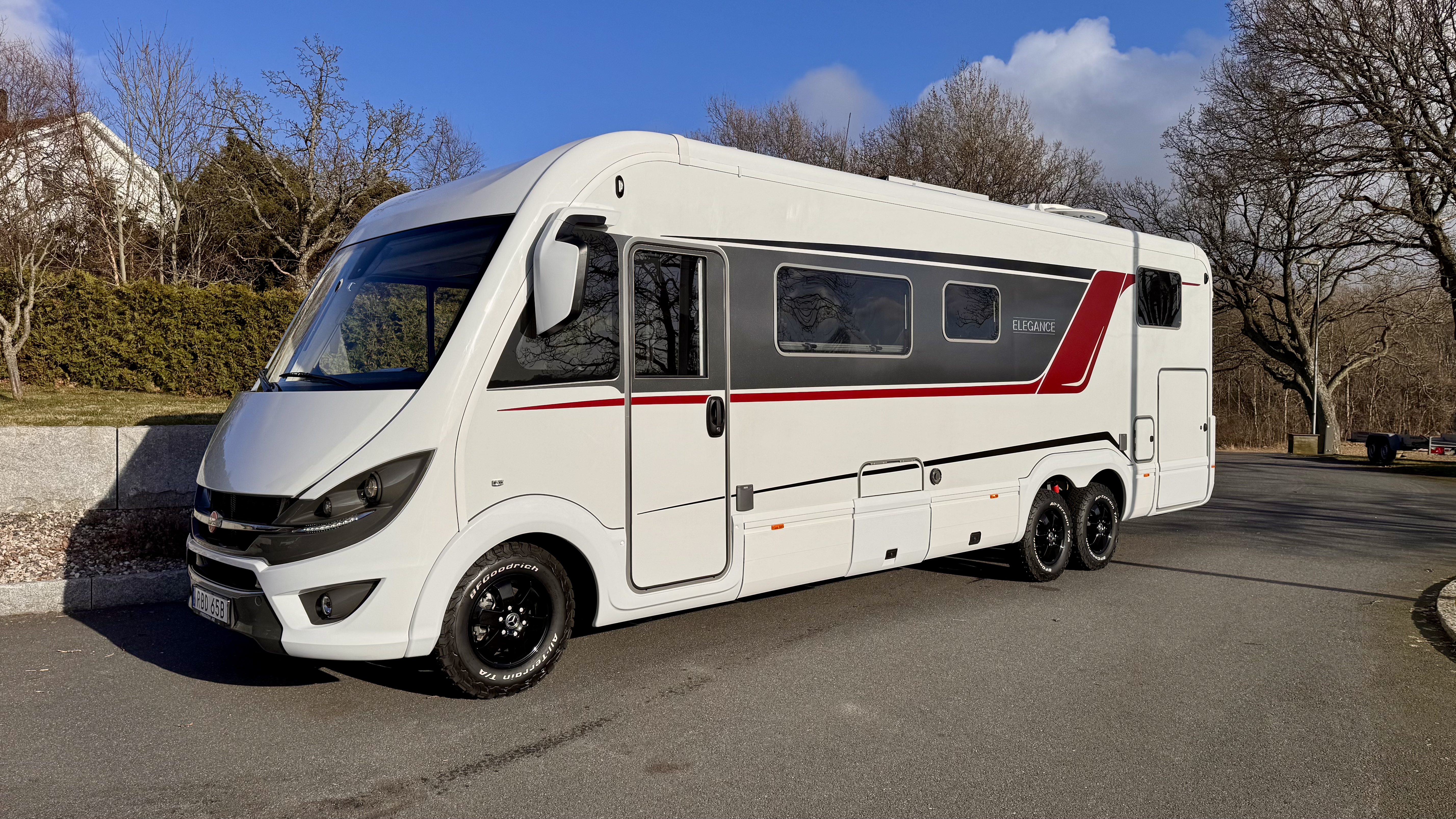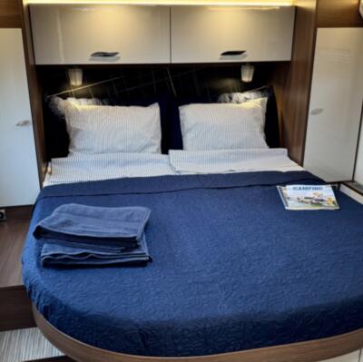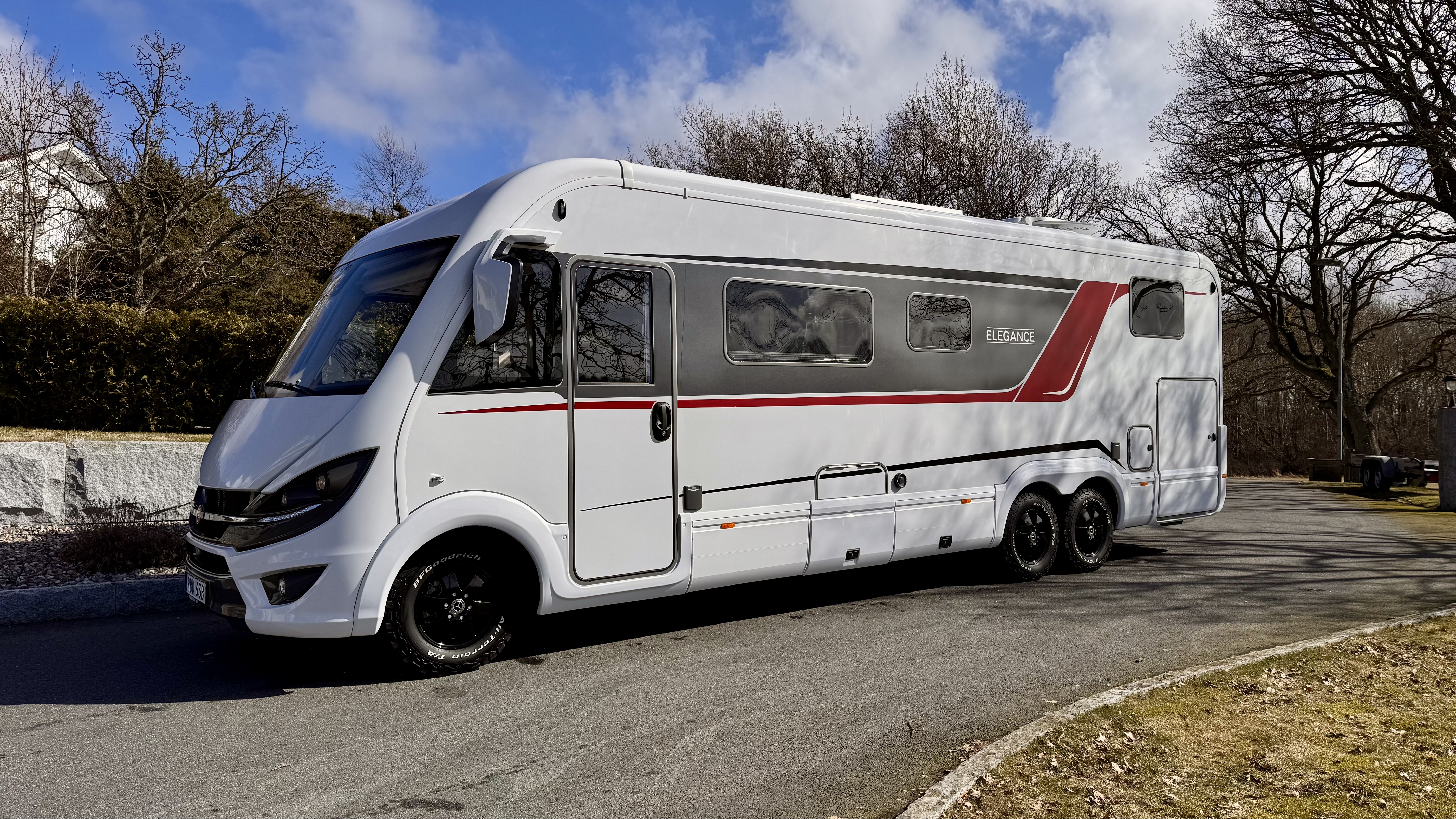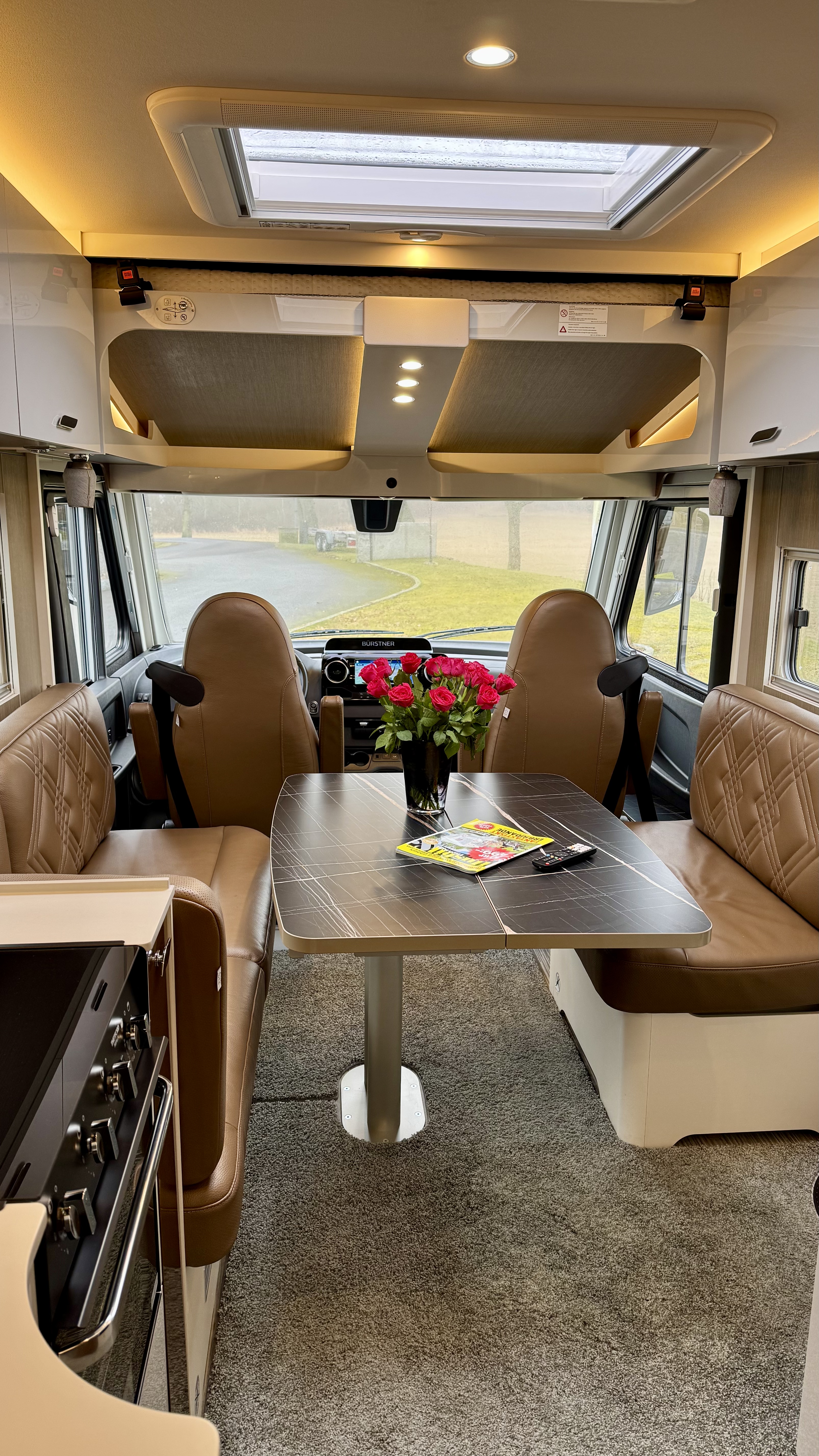 Detta är en otroligt välvårdad husbil i nyskick. Det går inte att hitta spår av användning. Finns inga repor, skavanker, bucklor, omlackeringar eller liknande. Rök & djurfri. Däcken är helt nya och ger husbilen ett mycket fräckare utseende. Det medföljer 2 mappar och pärmar fulla med instruktionsmanualer på allt som är installerat. Husbilen är helt fantastisk att köra tack vare Goldschmitt luftfjädring. Detta tillval gjordes vid första beställningen av husbilen. När husbilen står parkerad på ojämn campingplats så trycker man på automatisk nivellering så ställer sig husbilen helt rakt. Jag anser inte att hydrauliska stödben behövs när man har luftfjädring.