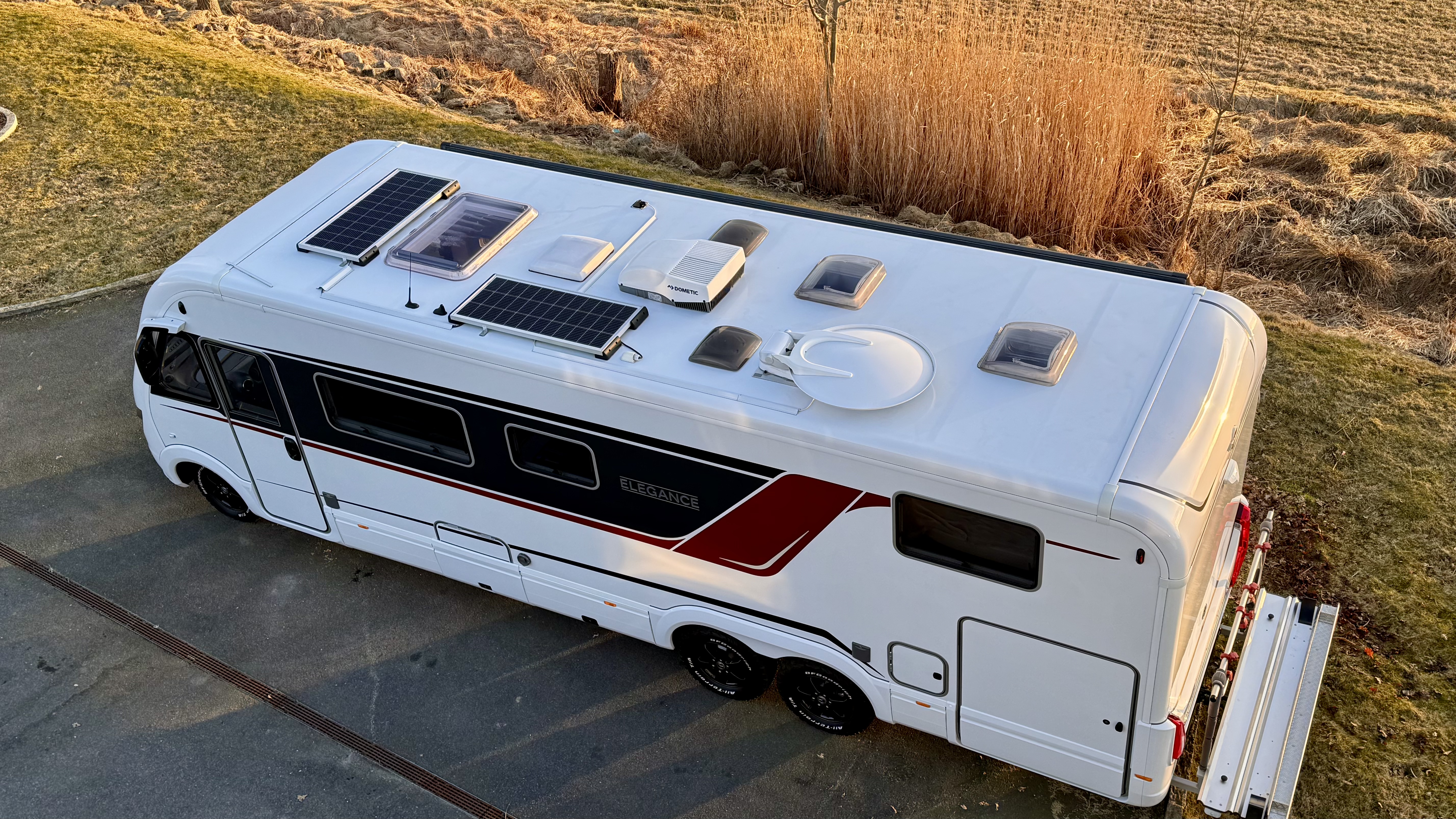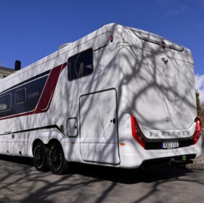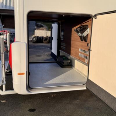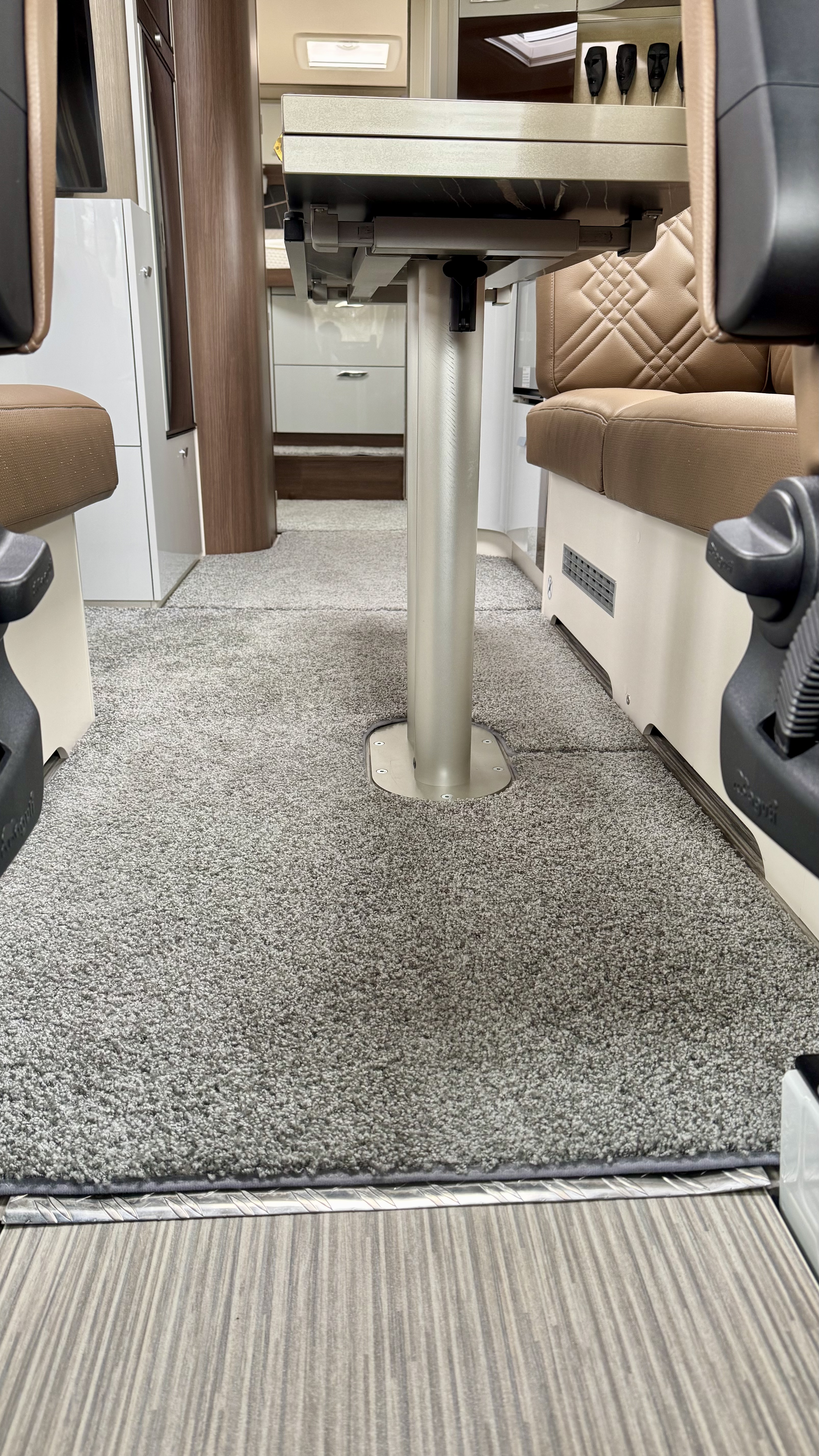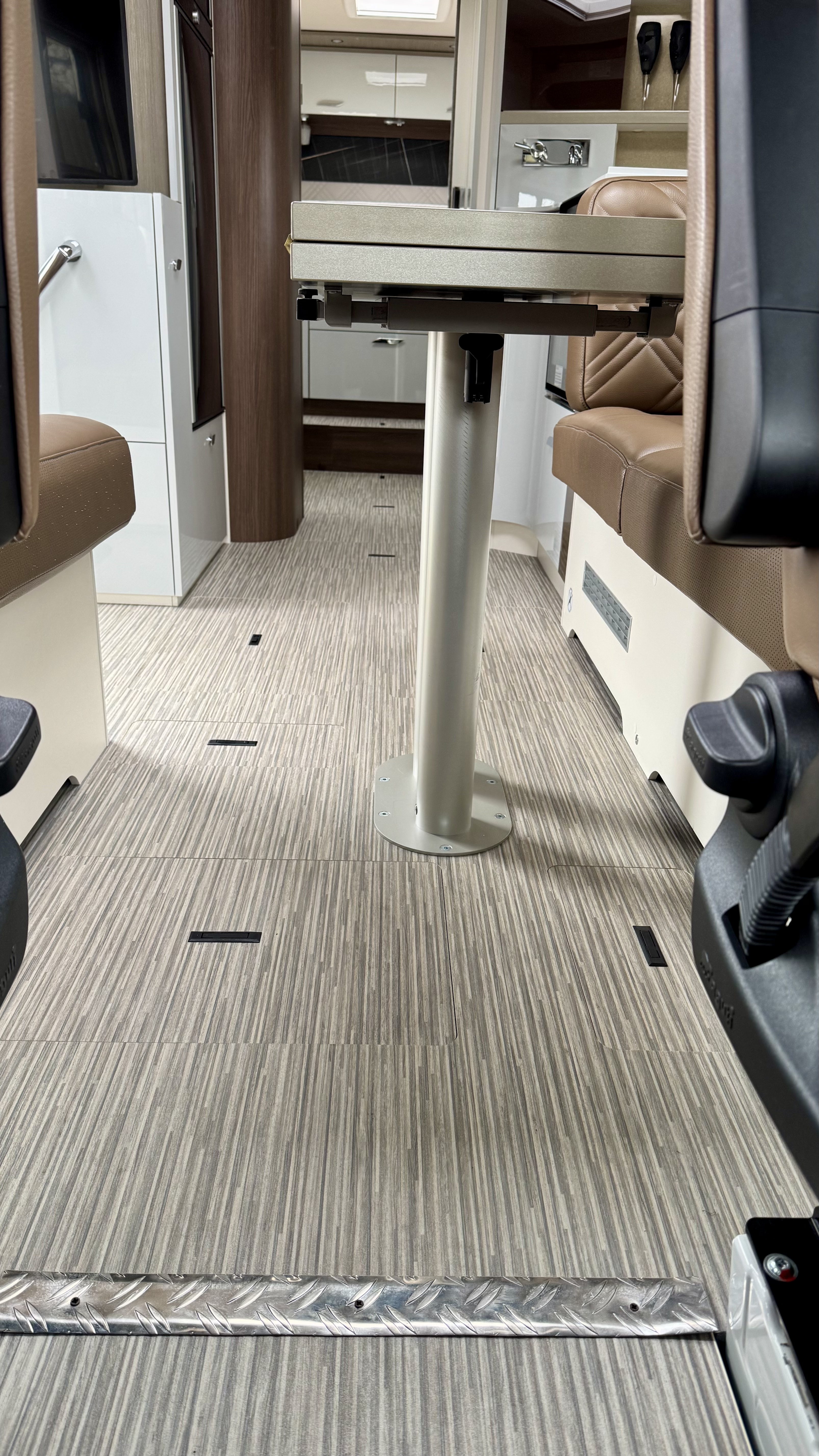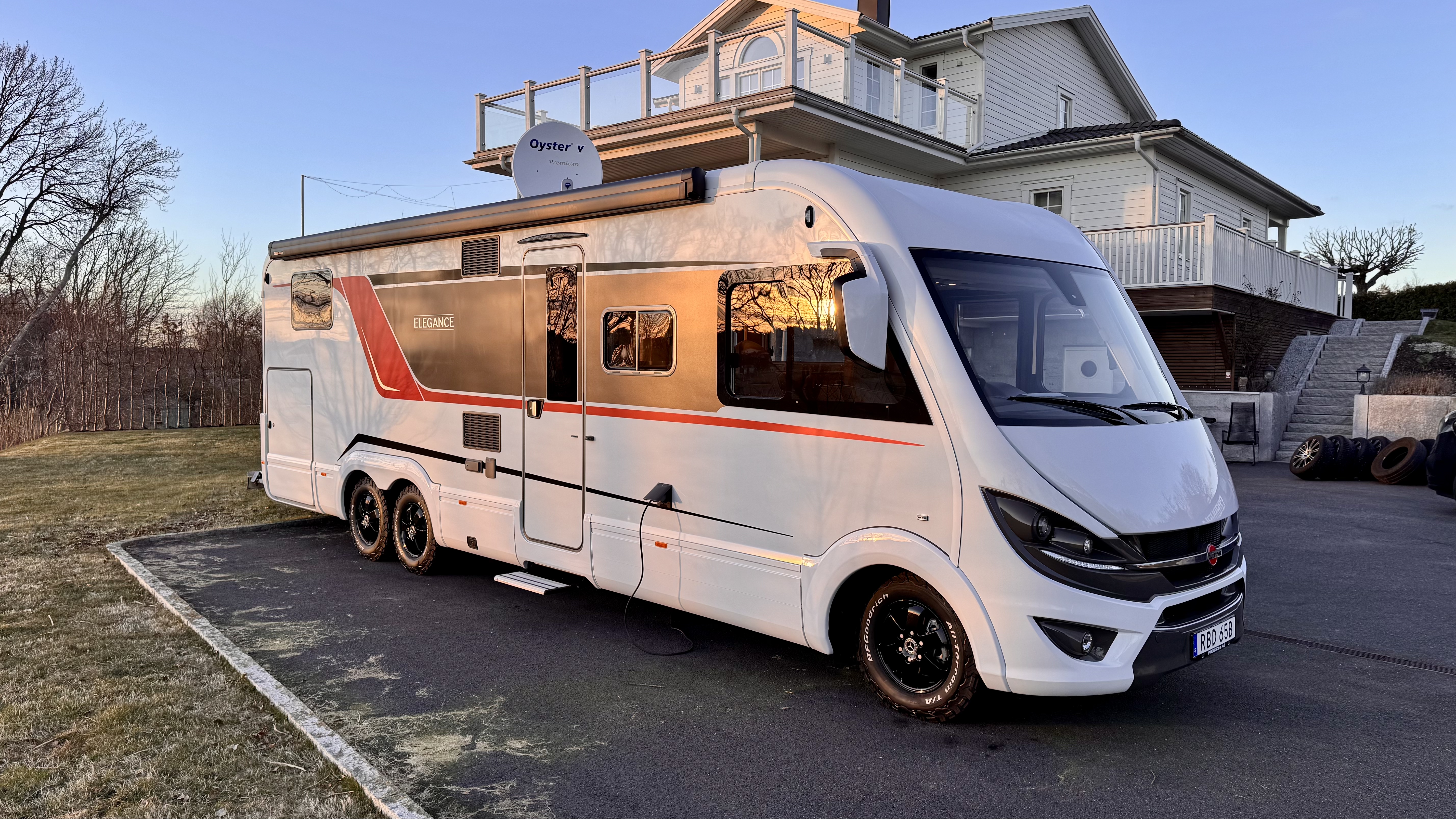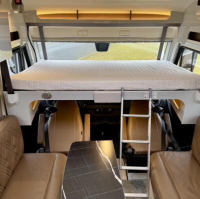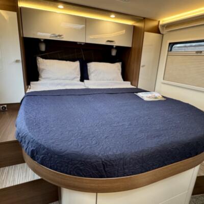 Detta är en otroligt välvårdad husbil i nyskick. Det går inte att hitta spår av användning. Finns inga repor, skavanker, bucklor, omlackeringar eller liknande. Rök & djurfri. Däcken är helt nya och ger husbilen ett mycket fräckare utseende. Det medföljer 2 mappar och pärmar fulla med instruktionsmanualer på allt som är installerat. Husbilen är helt fantastisk att köra tack vare Goldschmitt luftfjädring. Detta tillval gjordes vid första beställningen av husbilen. När husbilen står parkerad på ojämn campingplats så trycker man på automatisk nivellering så ställer sig husbilen helt rakt. Jag anser inte att hydrauliska stödben behövs när man har luftfjädring.