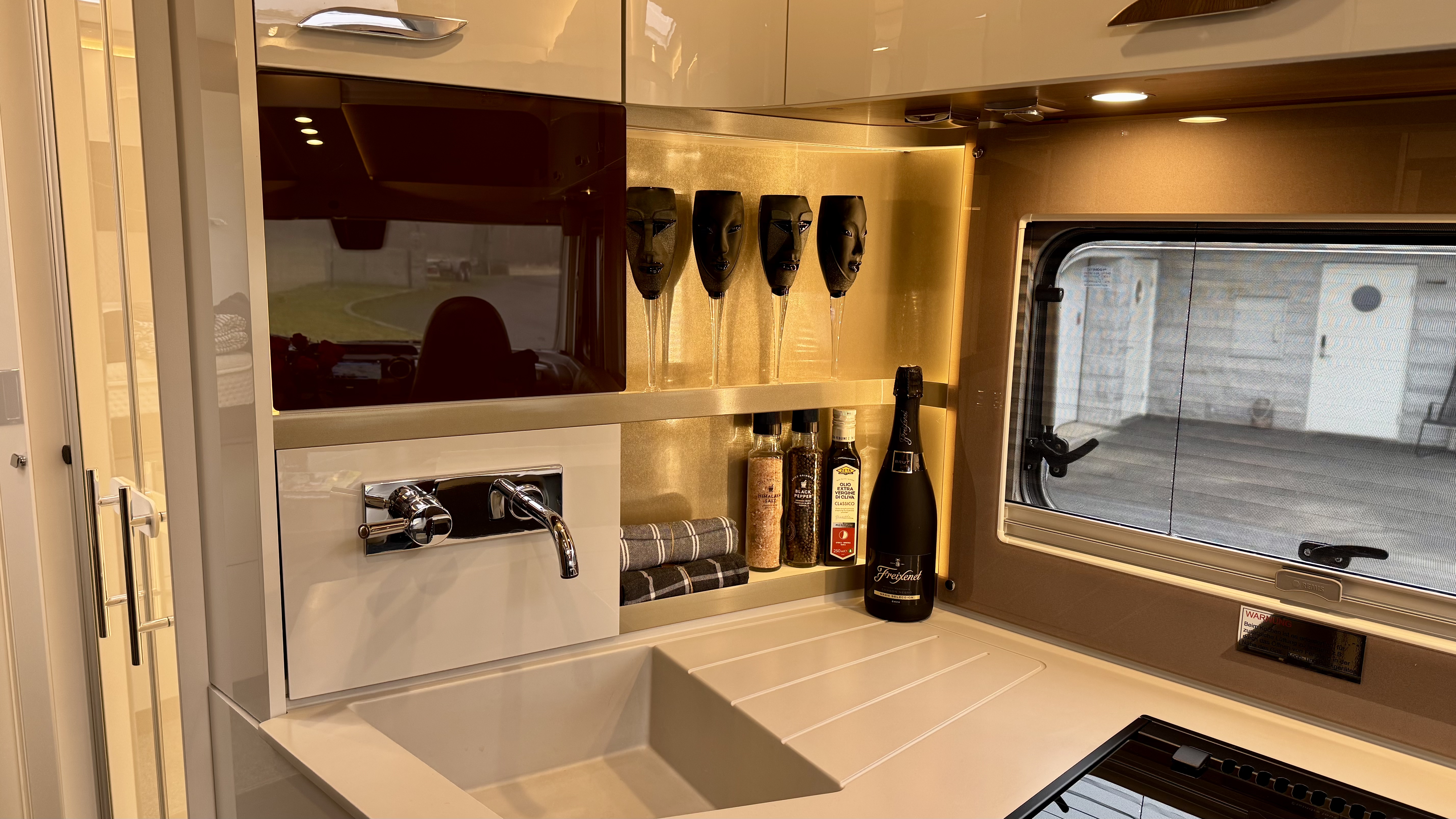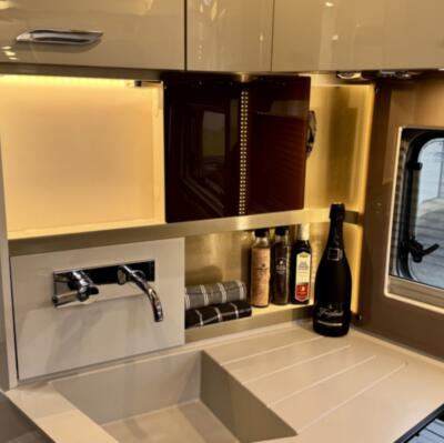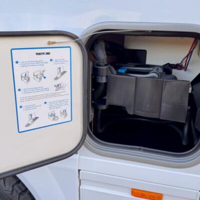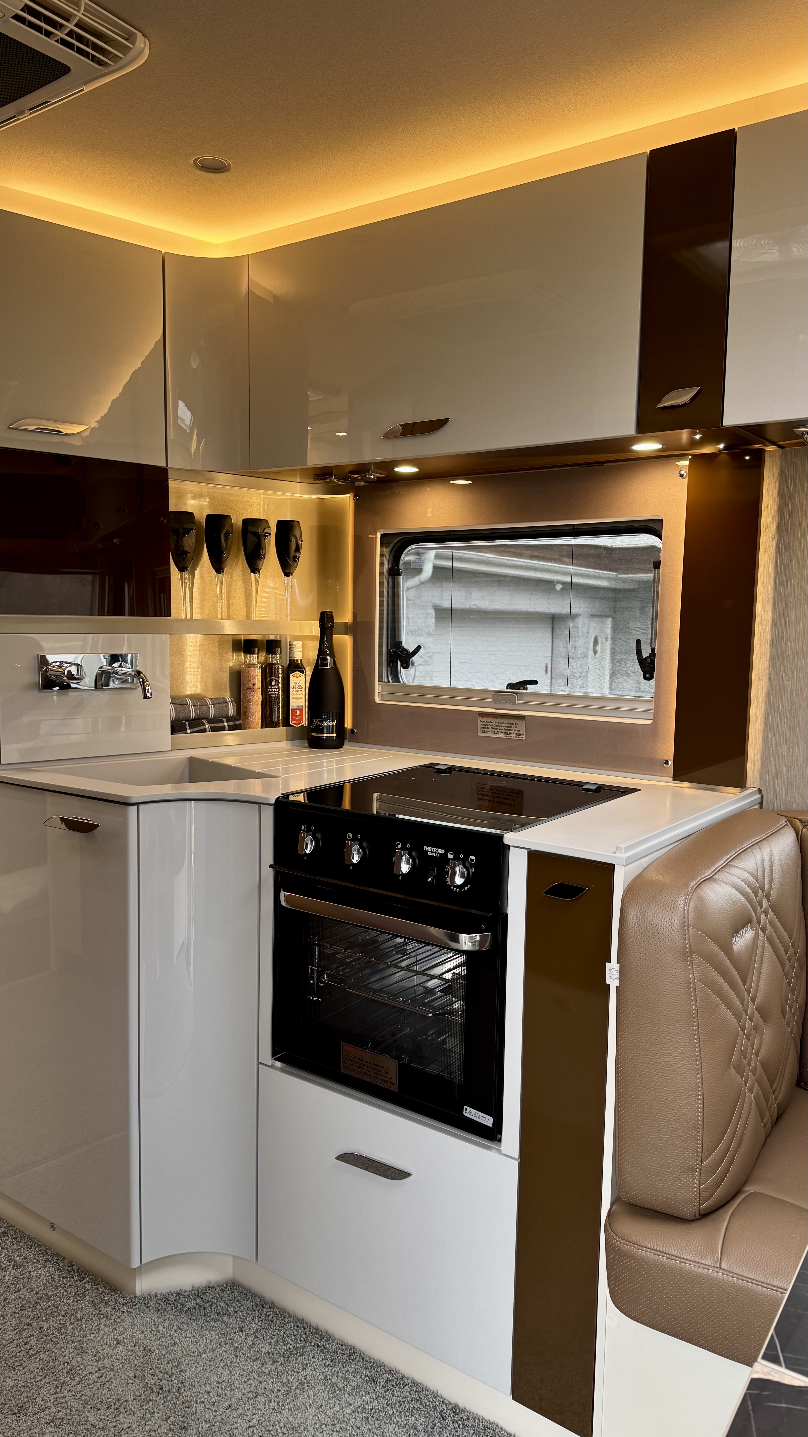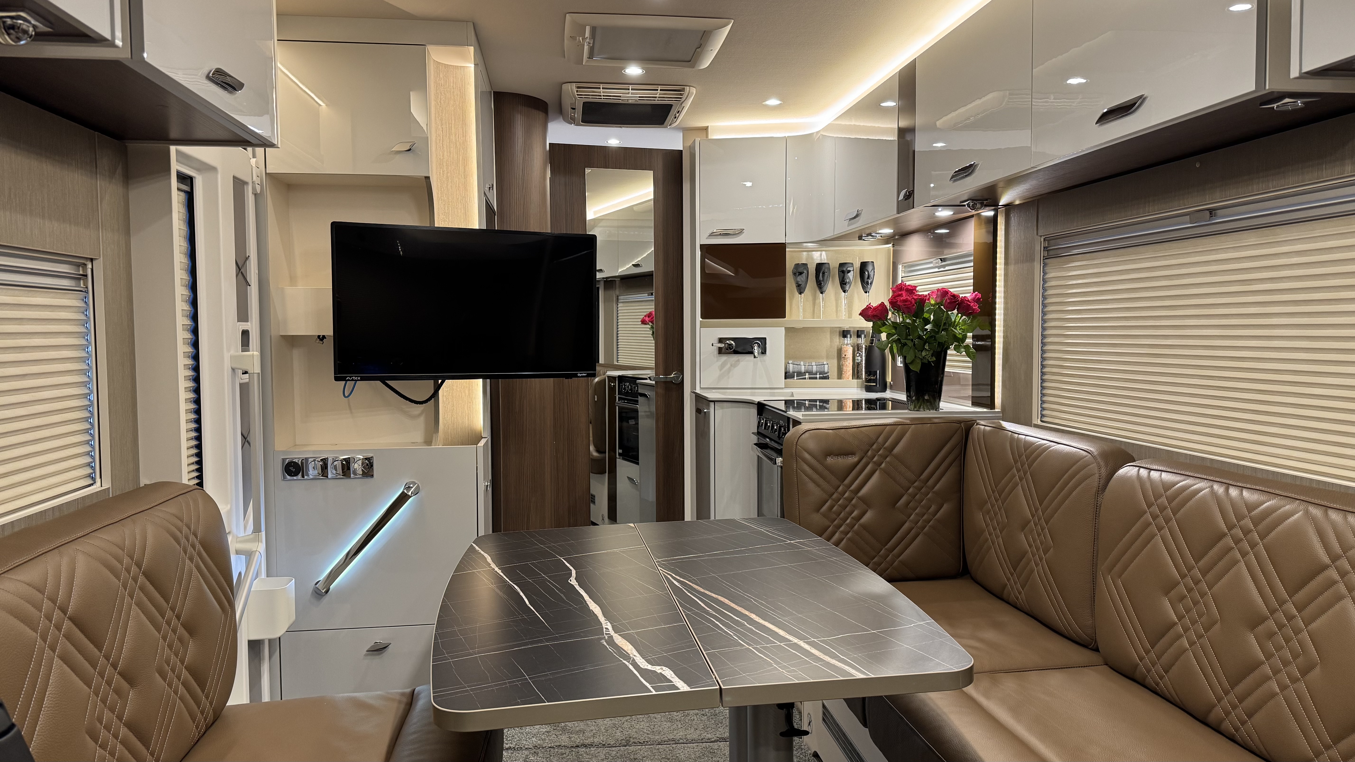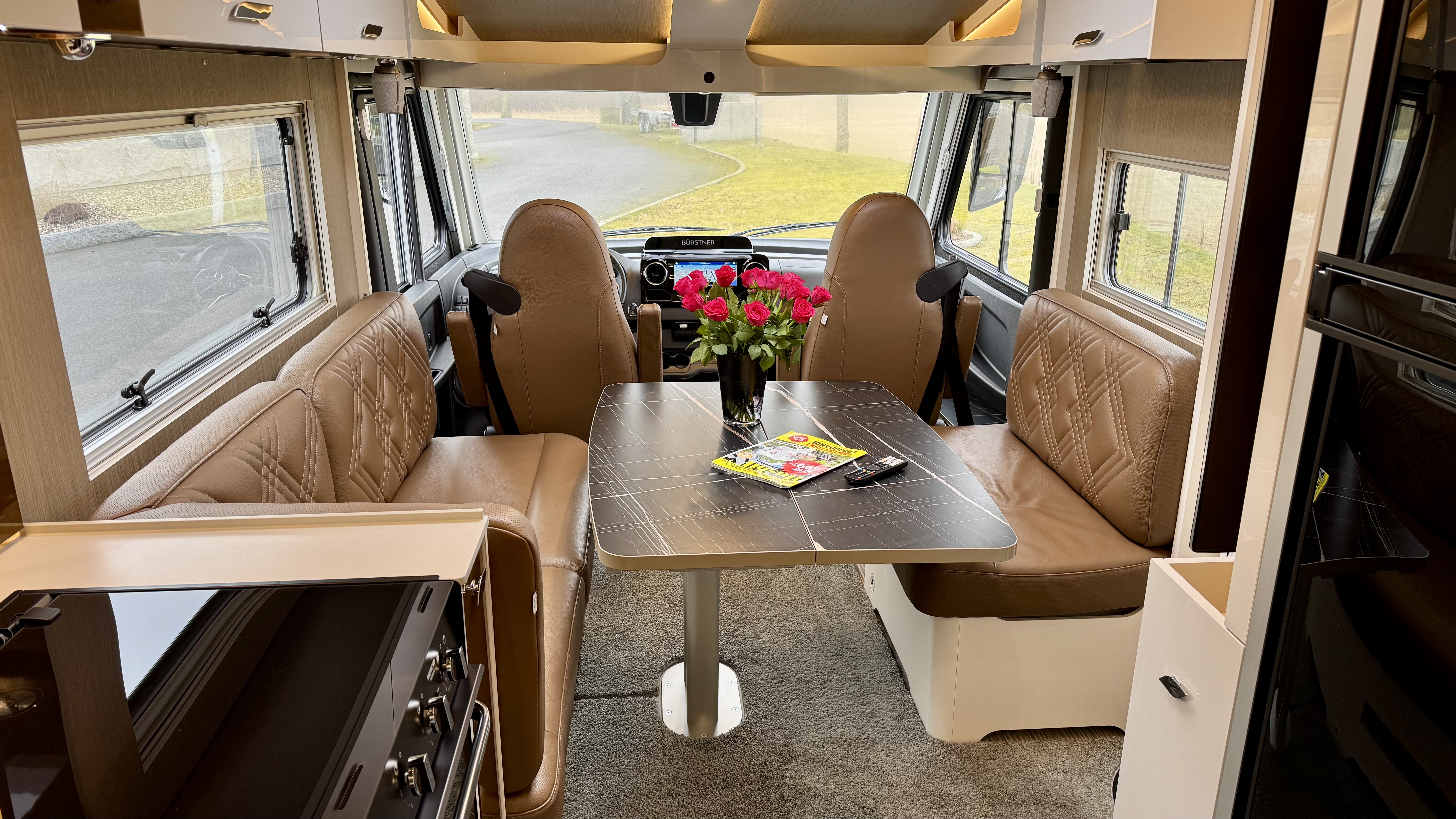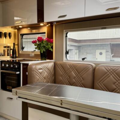 Detta är en otroligt välvårdad husbil i nyskick. Det går inte att hitta spår av användning. Finns inga repor, skavanker, bucklor, omlackeringar eller liknande. Rök & djurfri. Däcken är helt nya och ger husbilen ett mycket fräckare utseende. Det medföljer 2 mappar och pärmar fulla med instruktionsmanualer på allt som är installerat. Husbilen är helt fantastisk att köra tack vare Goldschmitt luftfjädring. Detta tillval gjordes vid första beställningen av husbilen. När husbilen står parkerad på ojämn campingplats så trycker man på automatisk nivellering så ställer sig husbilen helt rakt. Jag anser inte att hydrauliska stödben behövs när man har luftfjädring.