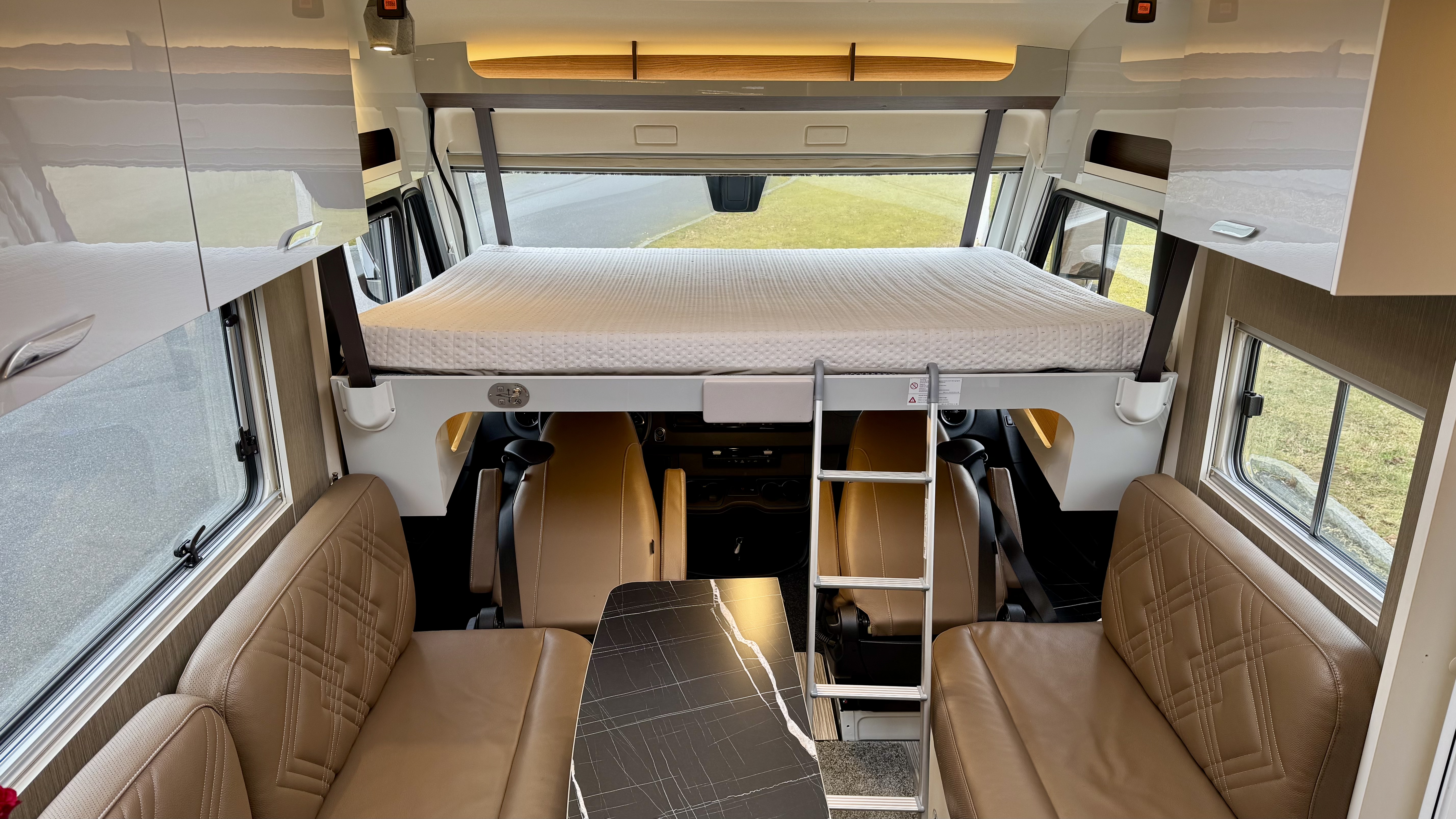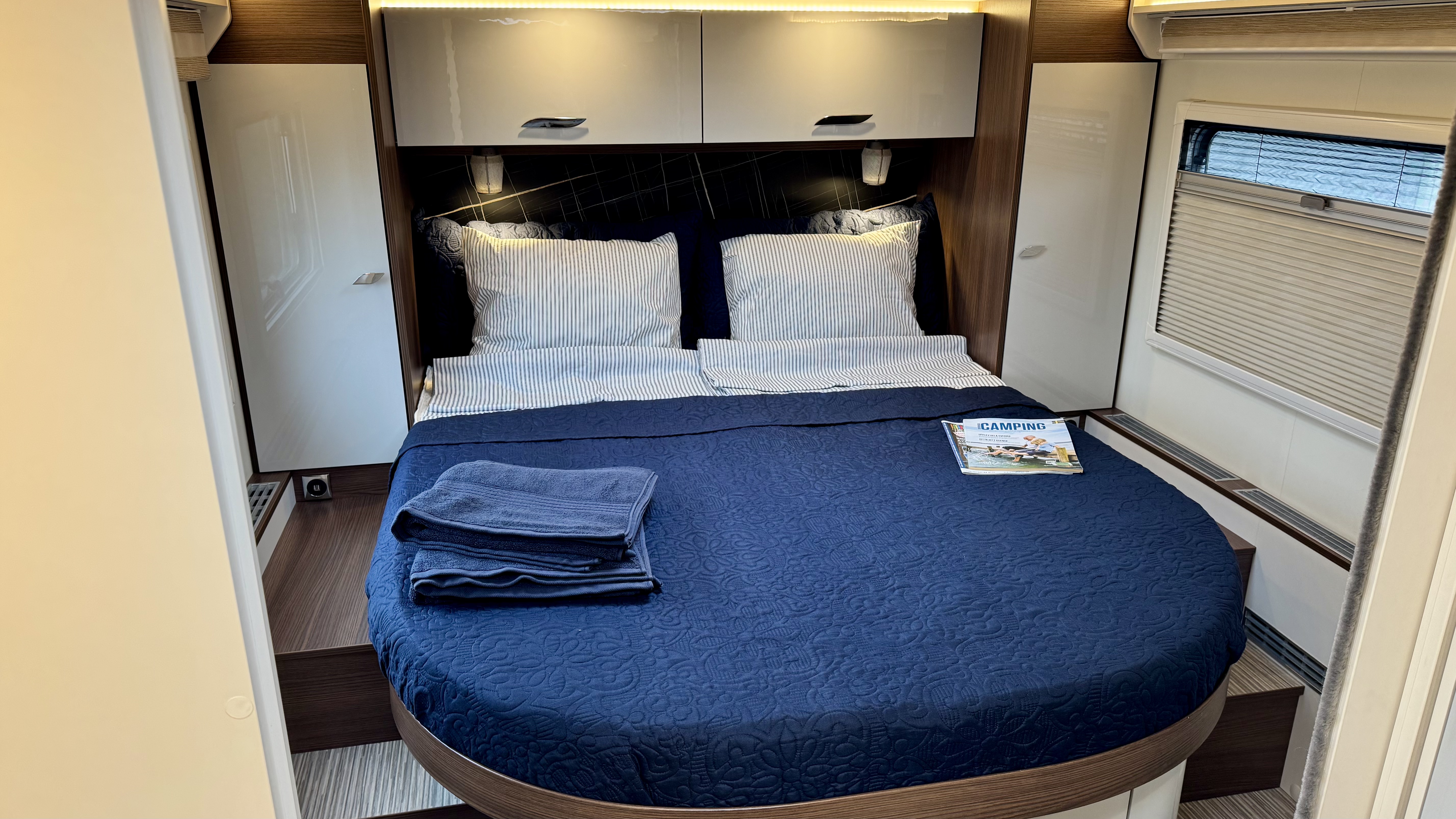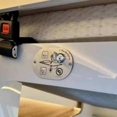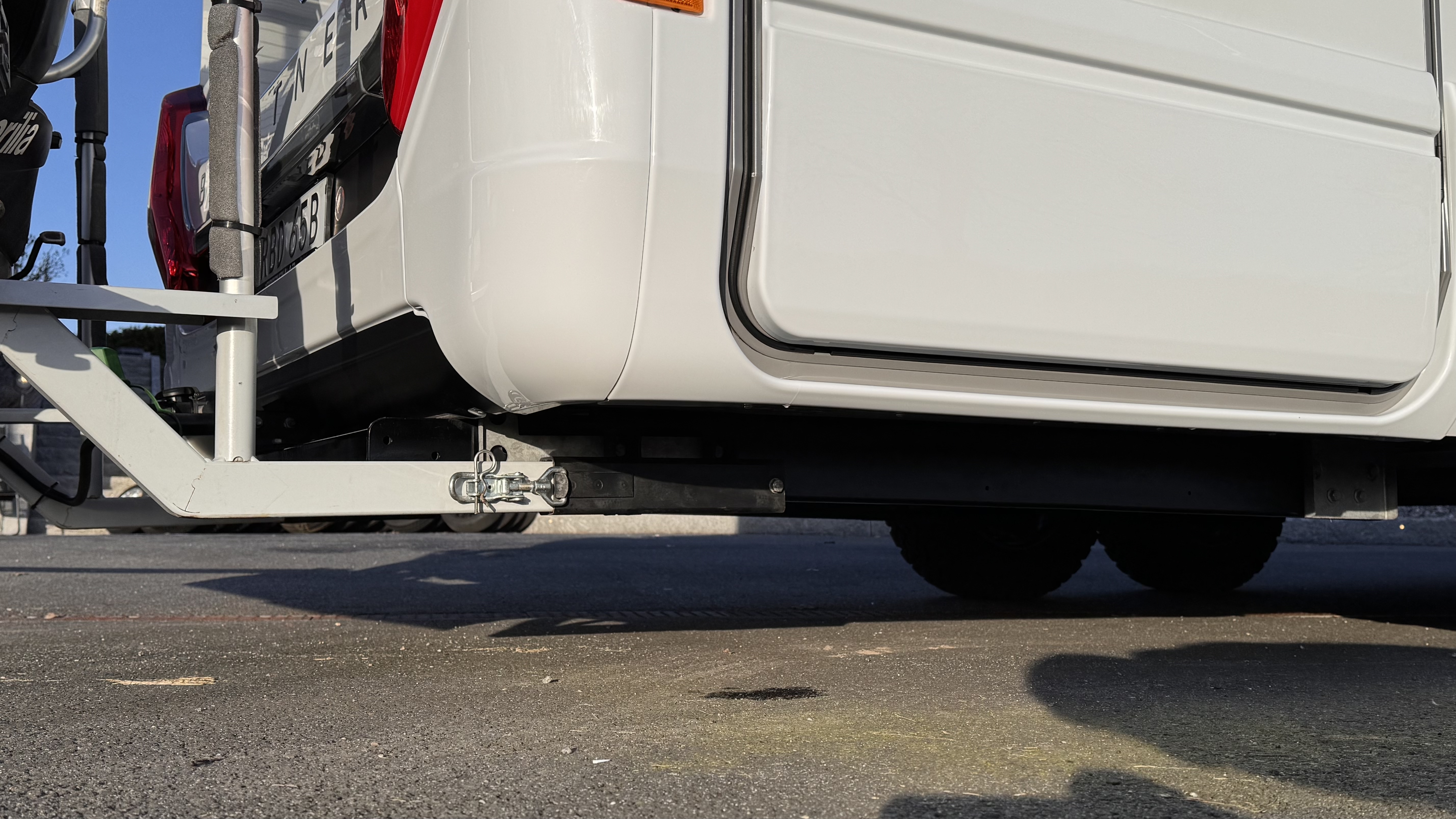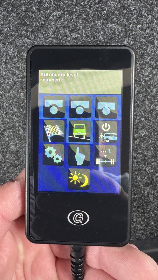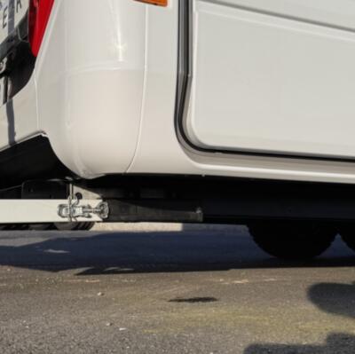 Höj och sänk husbilen via fjärrkontrollen under ratten. Automatisk nivåreglering gör att husbilen ställer in sig rakt med hjälp av luftfjädringen. Systemet ökar körsäkerheten genom att reducera krängningar och förbättrar väghållningen, särskilt vid tung last.