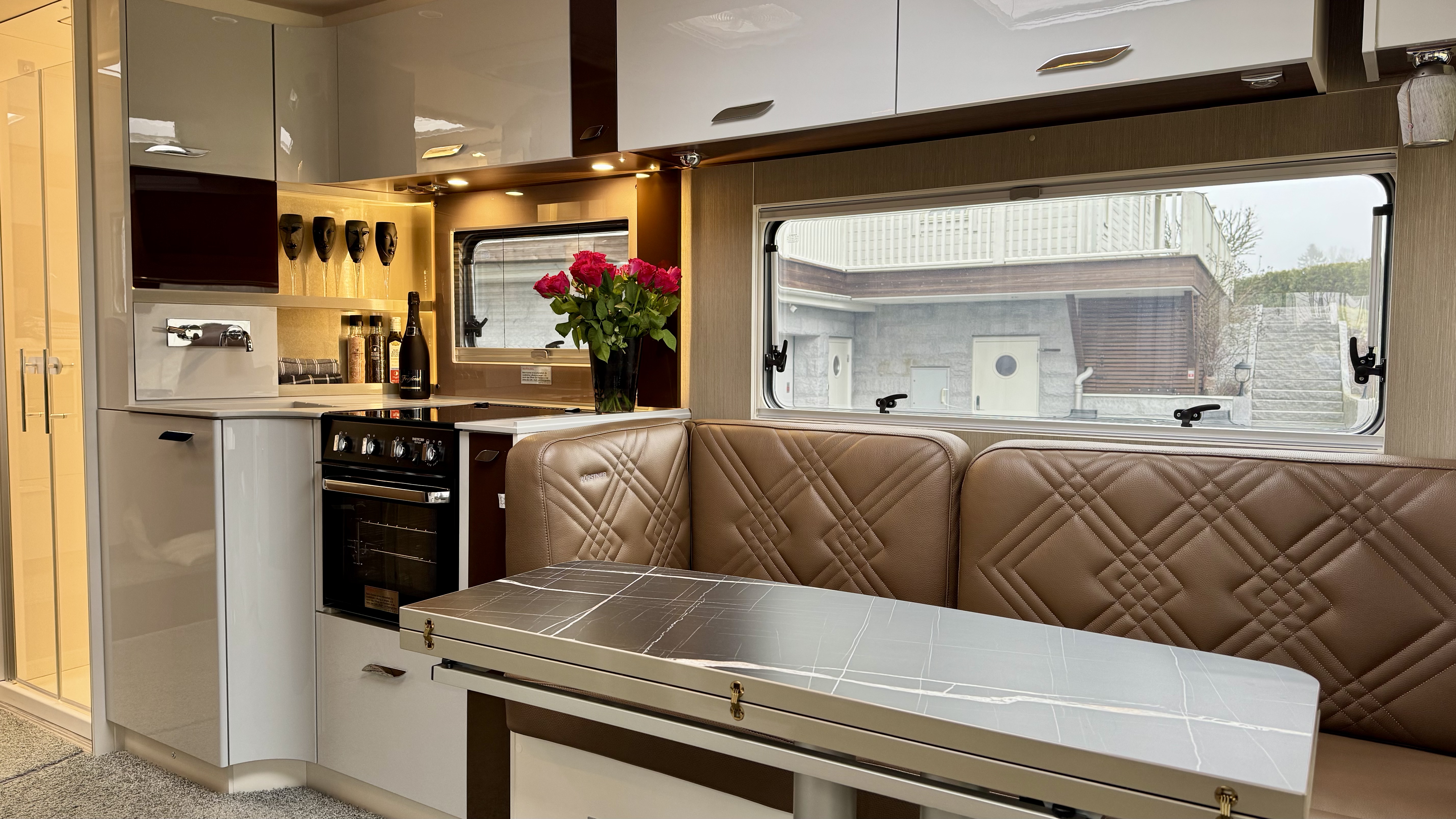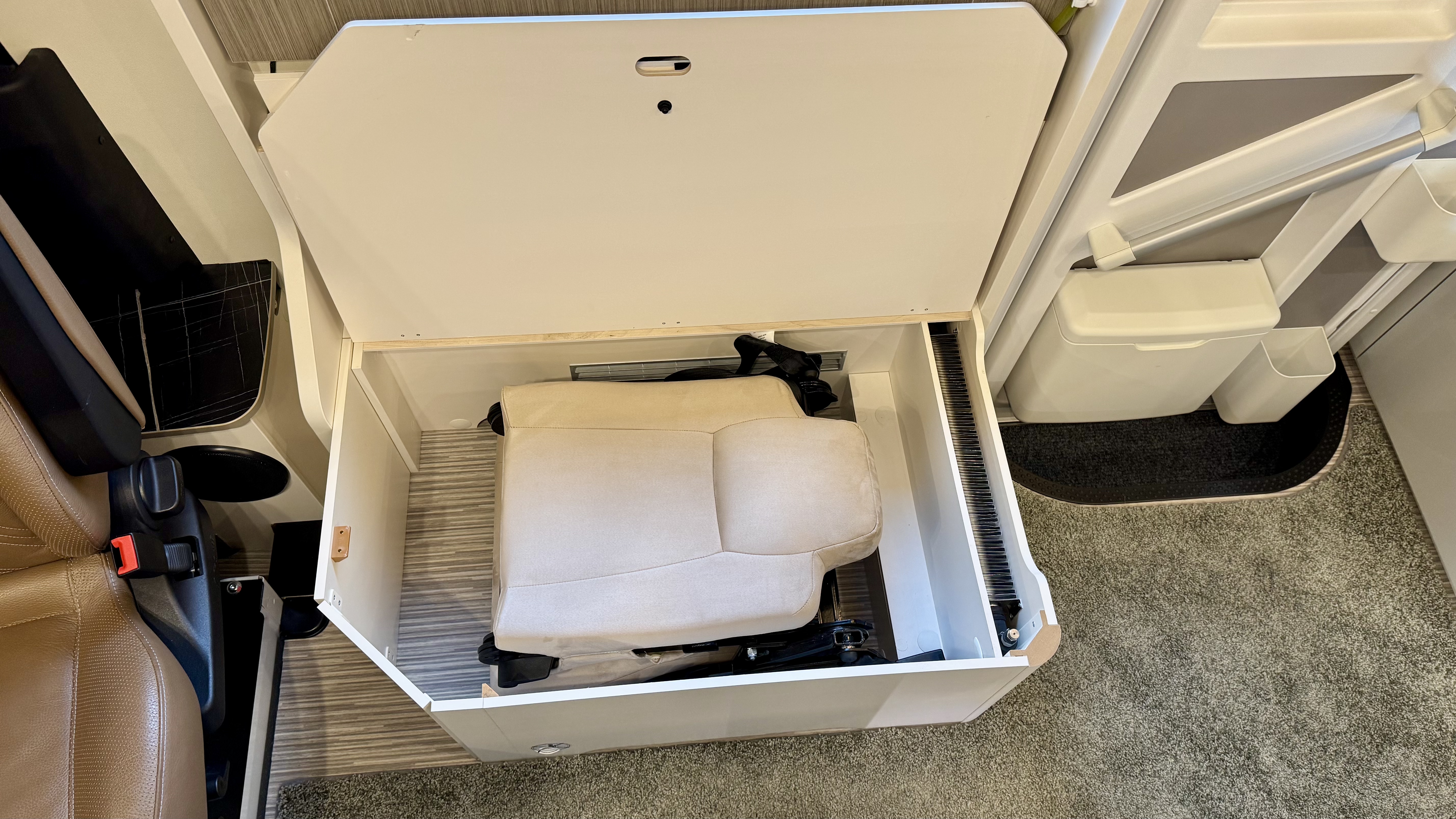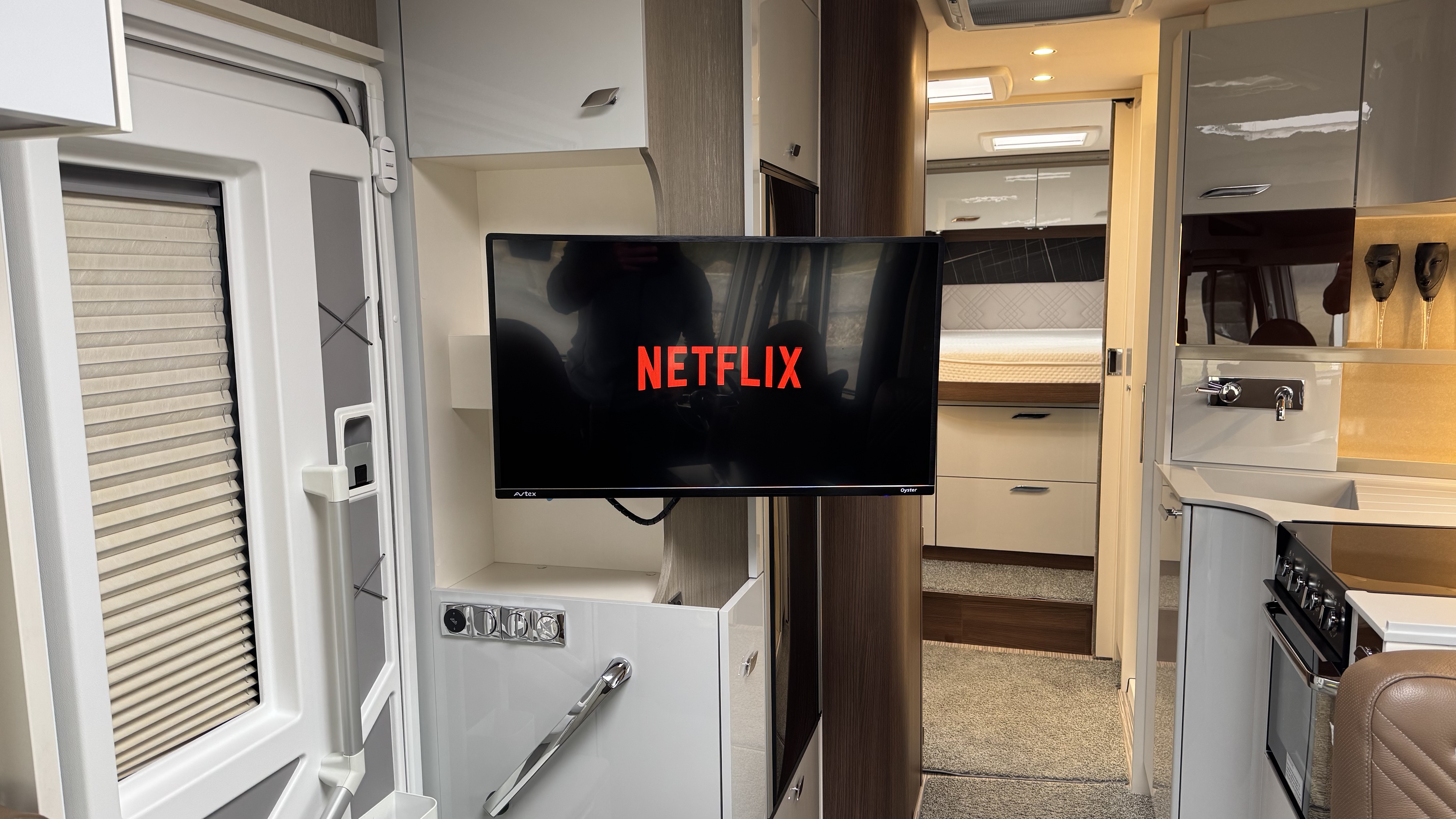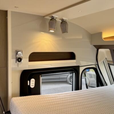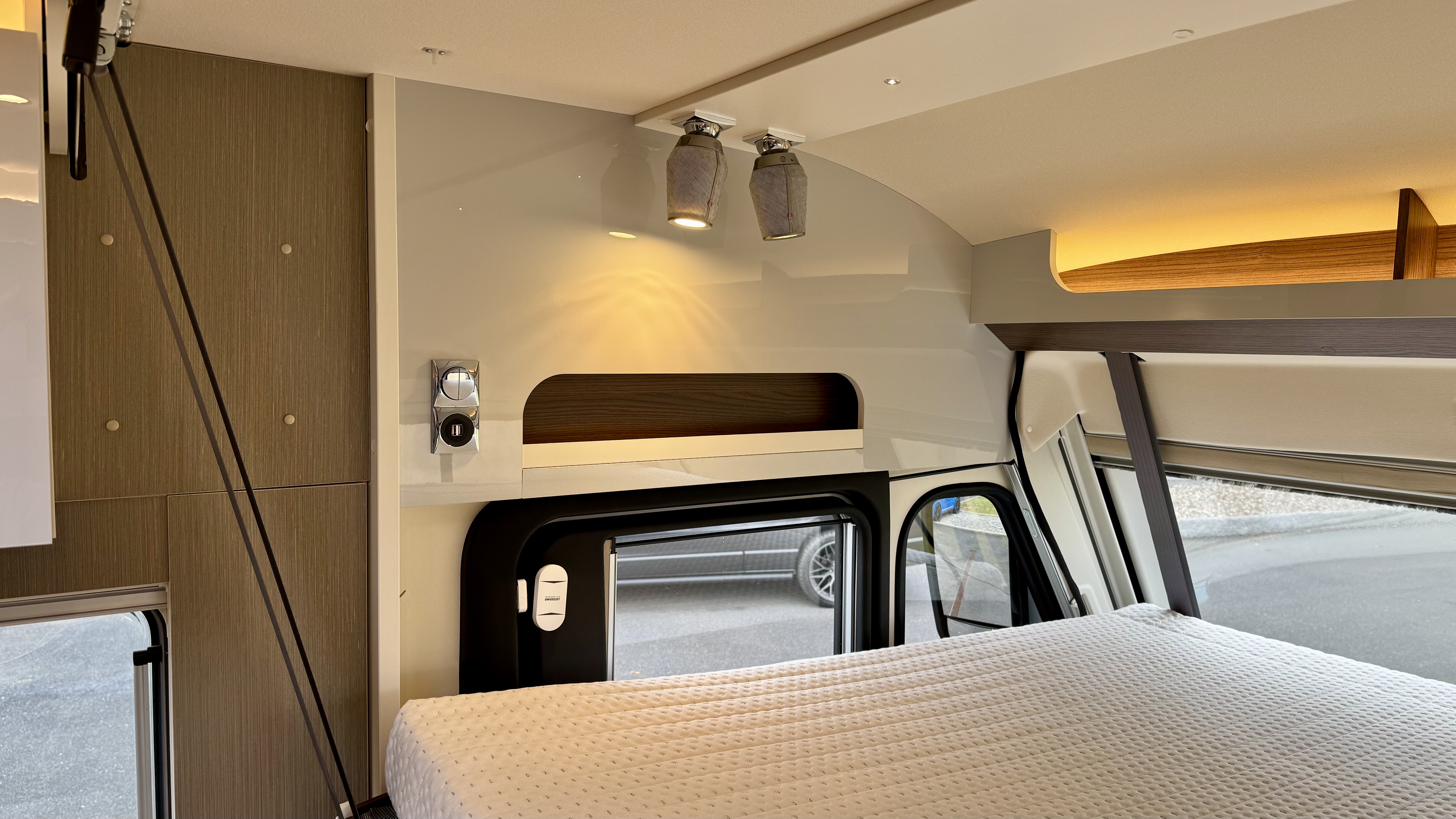 Höj och sänk husbilen via fjärrkontrollen under ratten. Automatisk nivåreglering gör att husbilen ställer in sig rakt med hjälp av luftfjädringen. Systemet ökar körsäkerheten genom att reducera krängningar och förbättrar väghållningen, särskilt vid tung last.