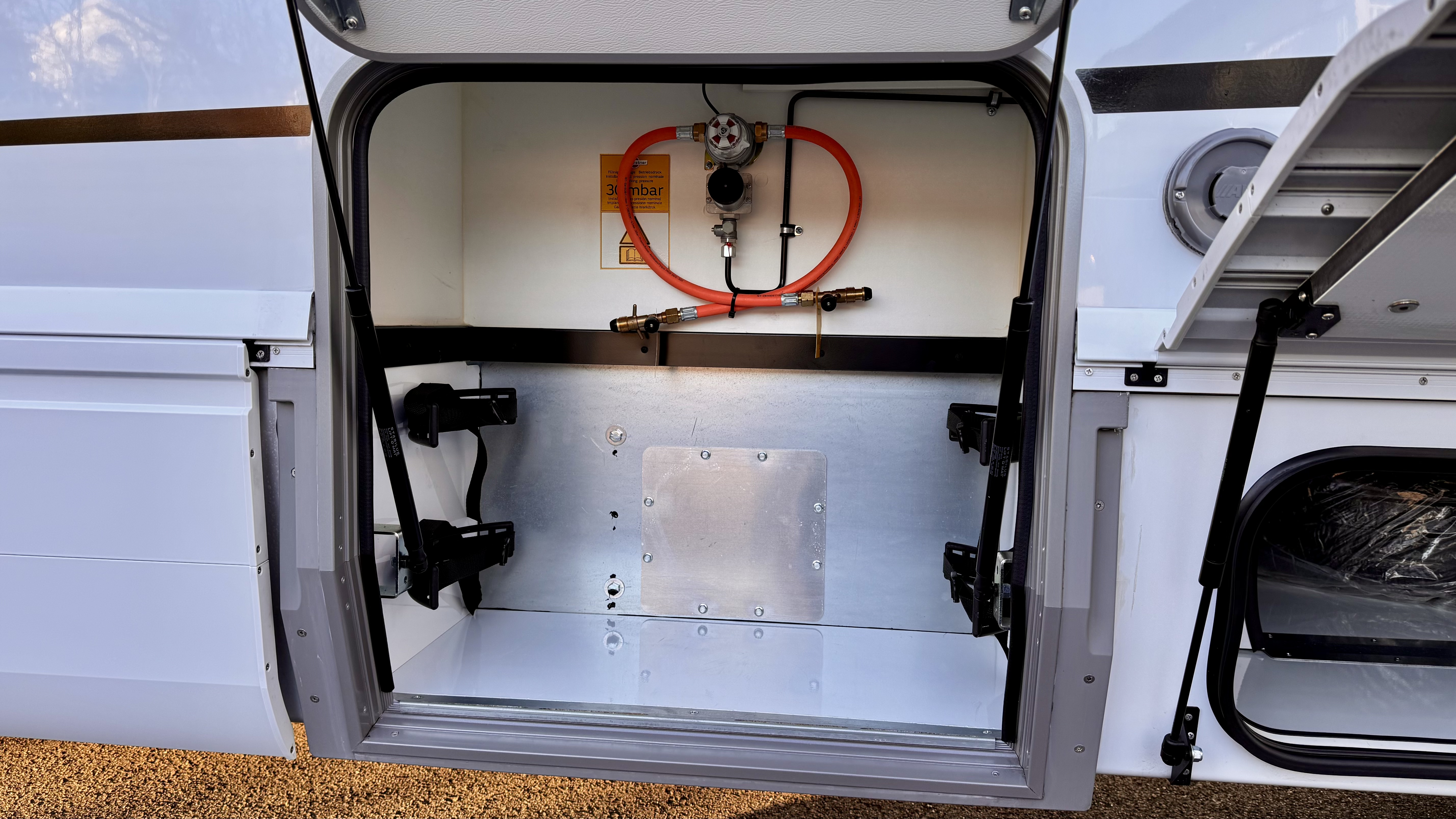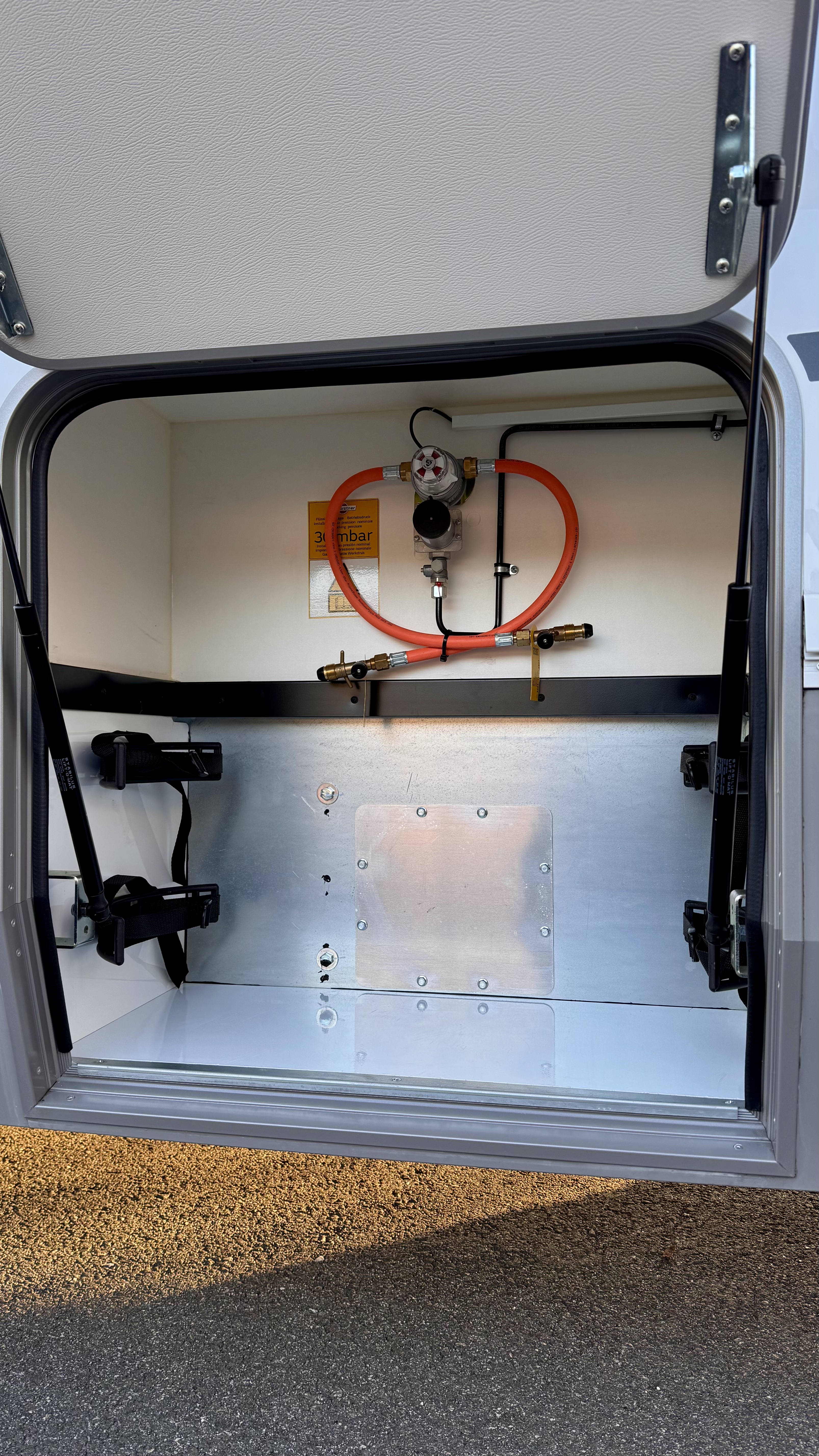 Plats för 2st gasoltuber. Av/på knapp till gasolen sitter vid kontrollpanelen.