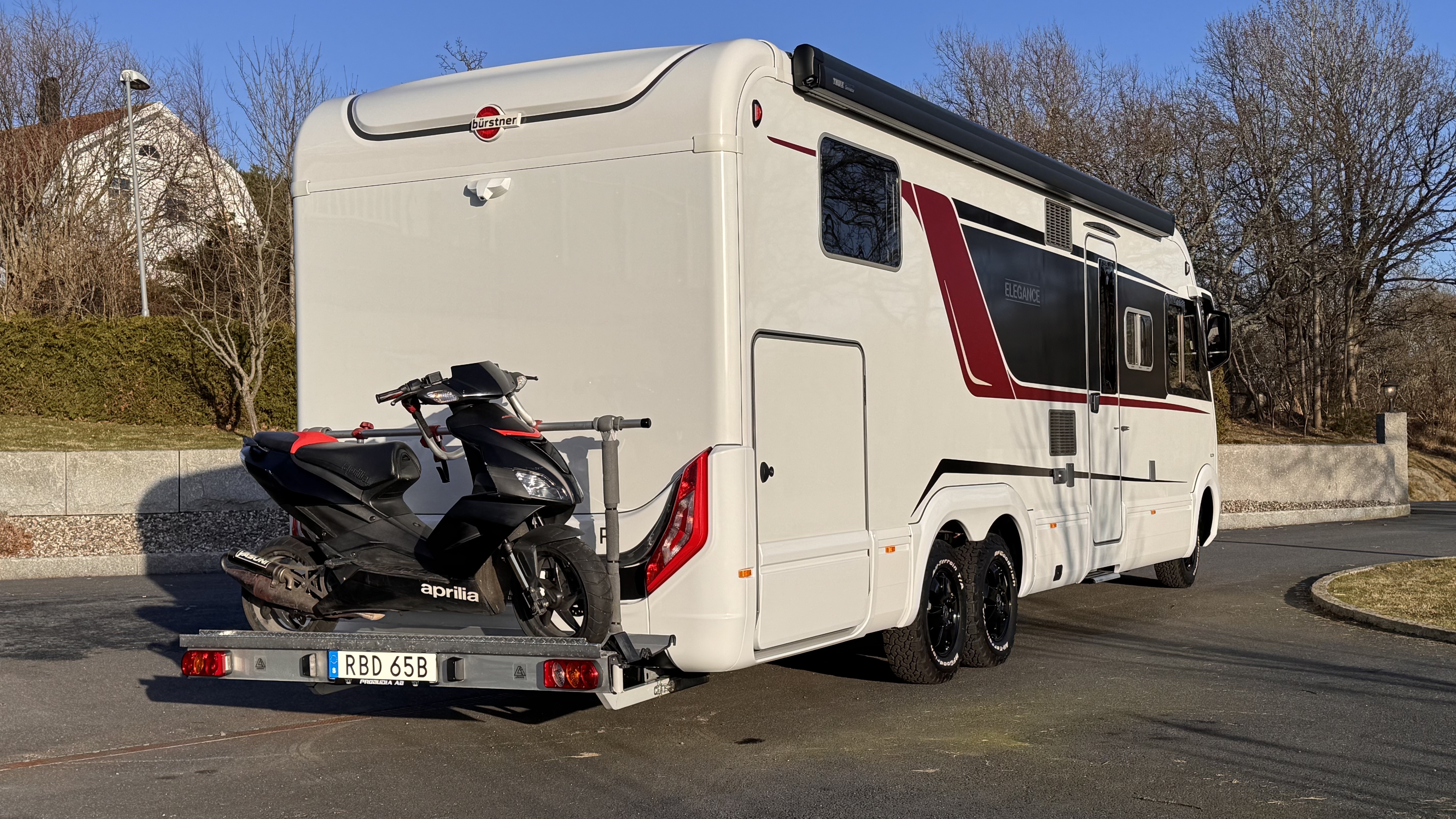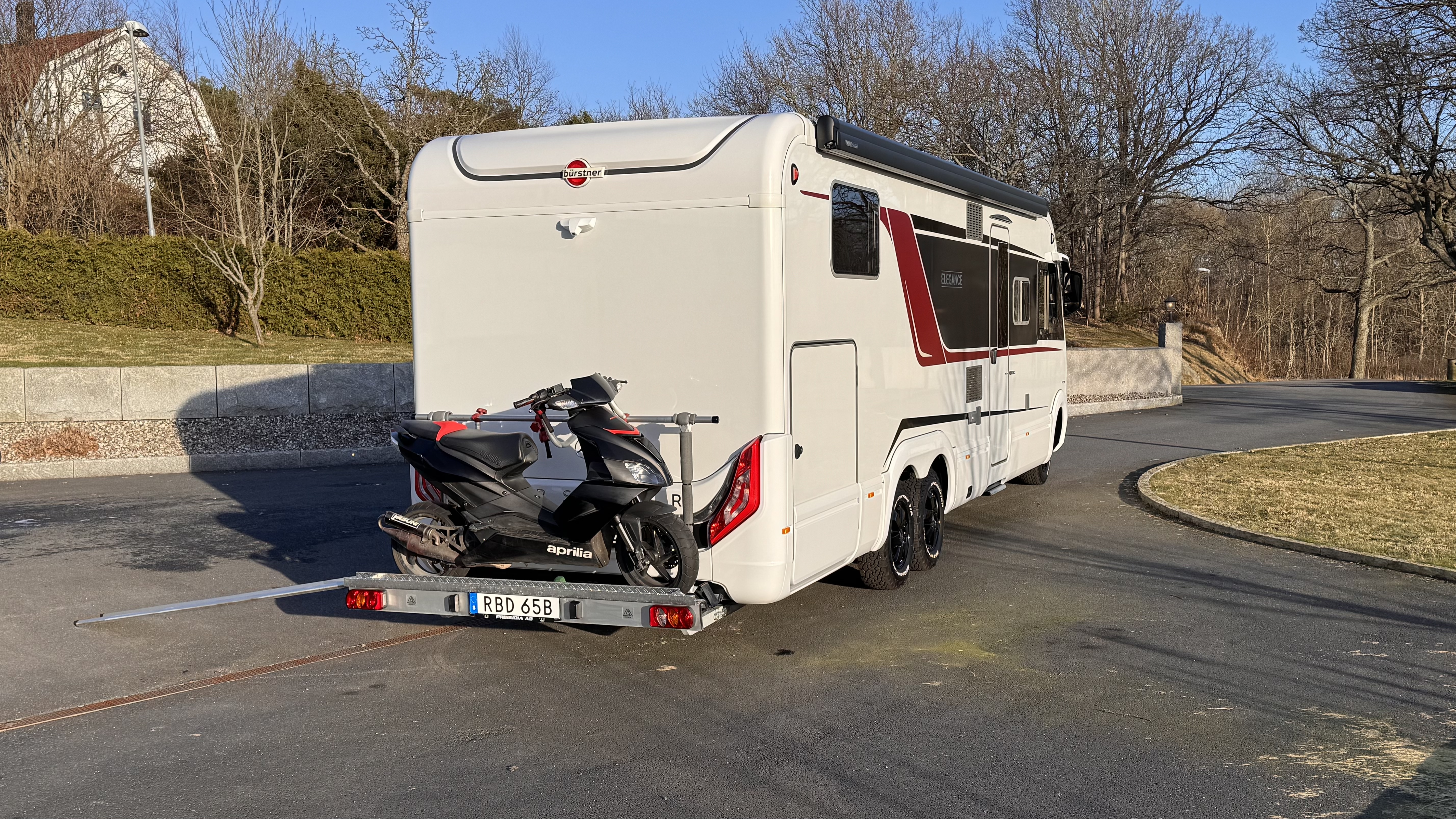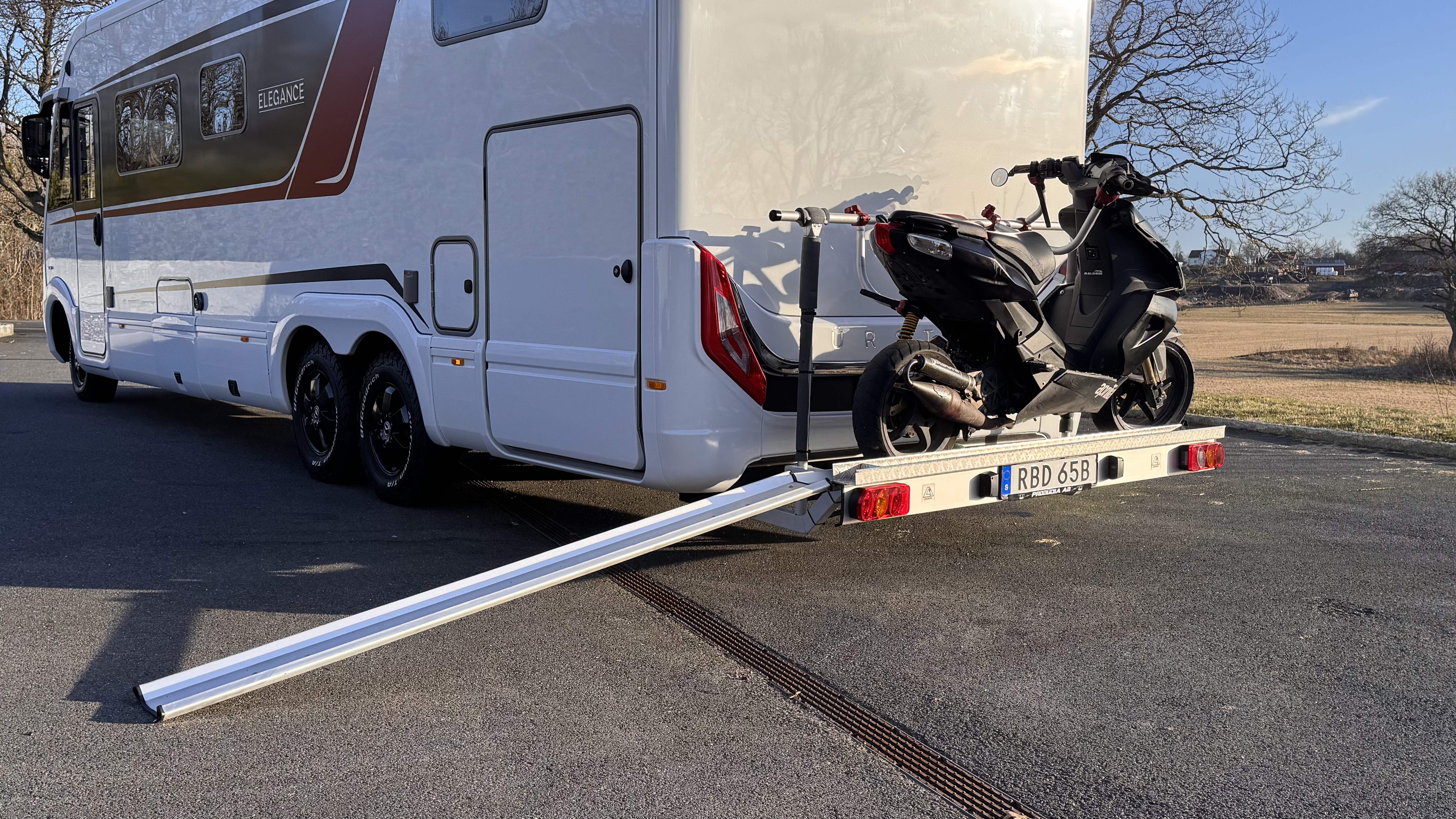 Linnepe Moped/cykelställ med ramp, klarar laster upp till 150 kg. Enkel att plocka av.