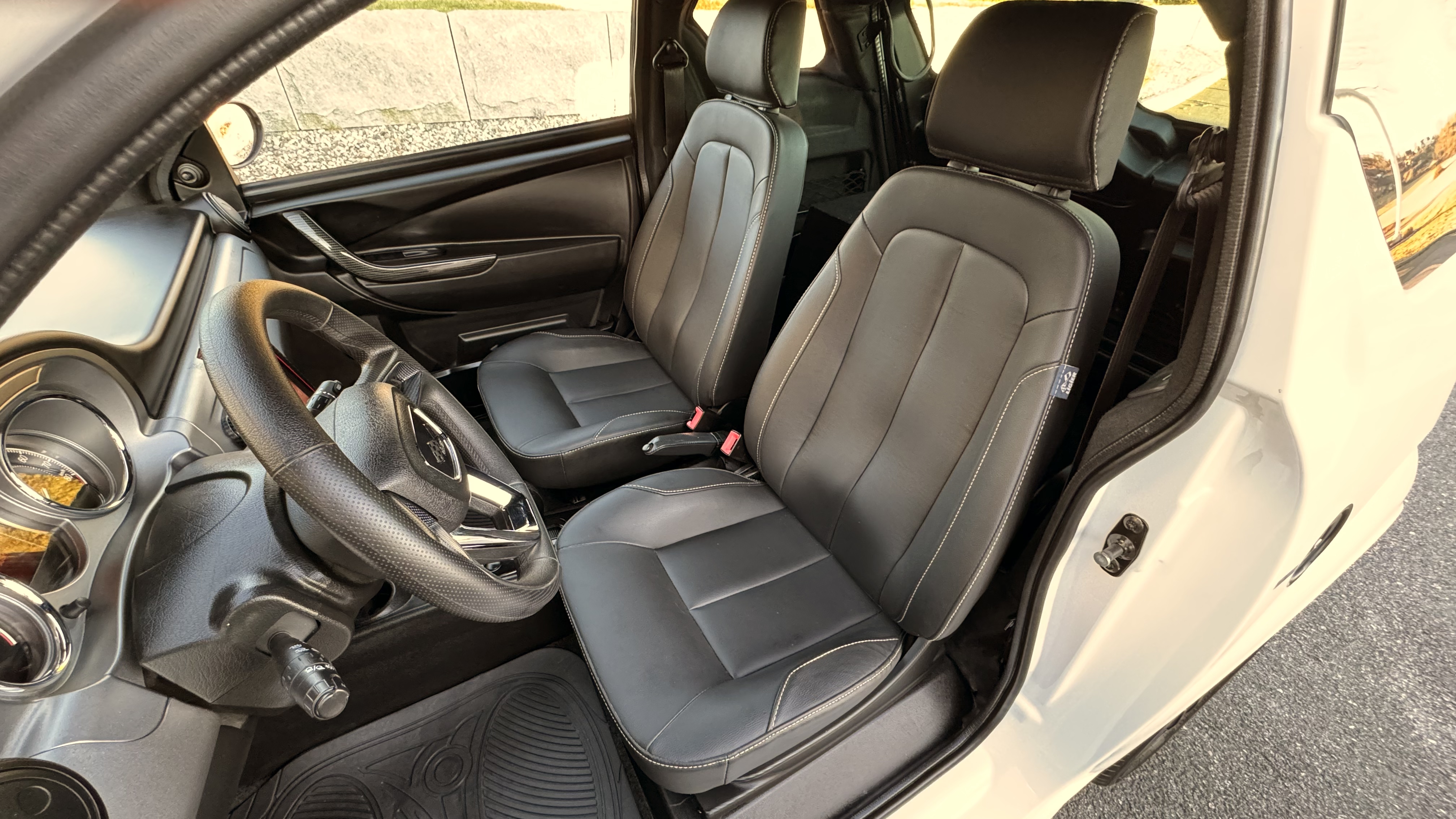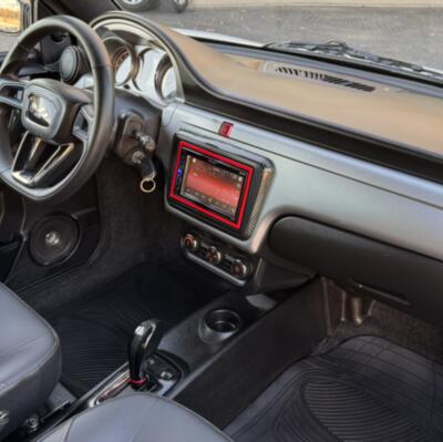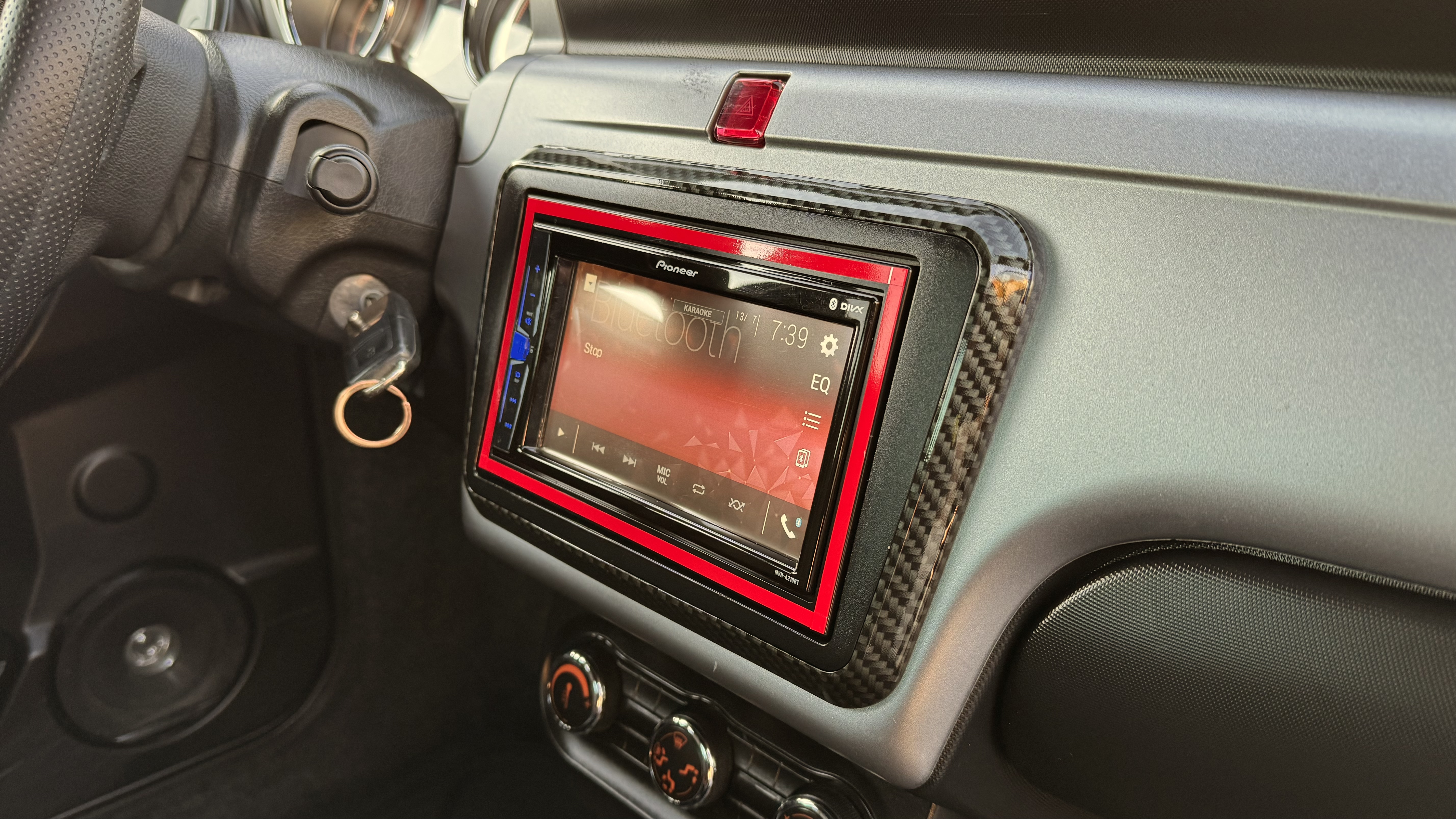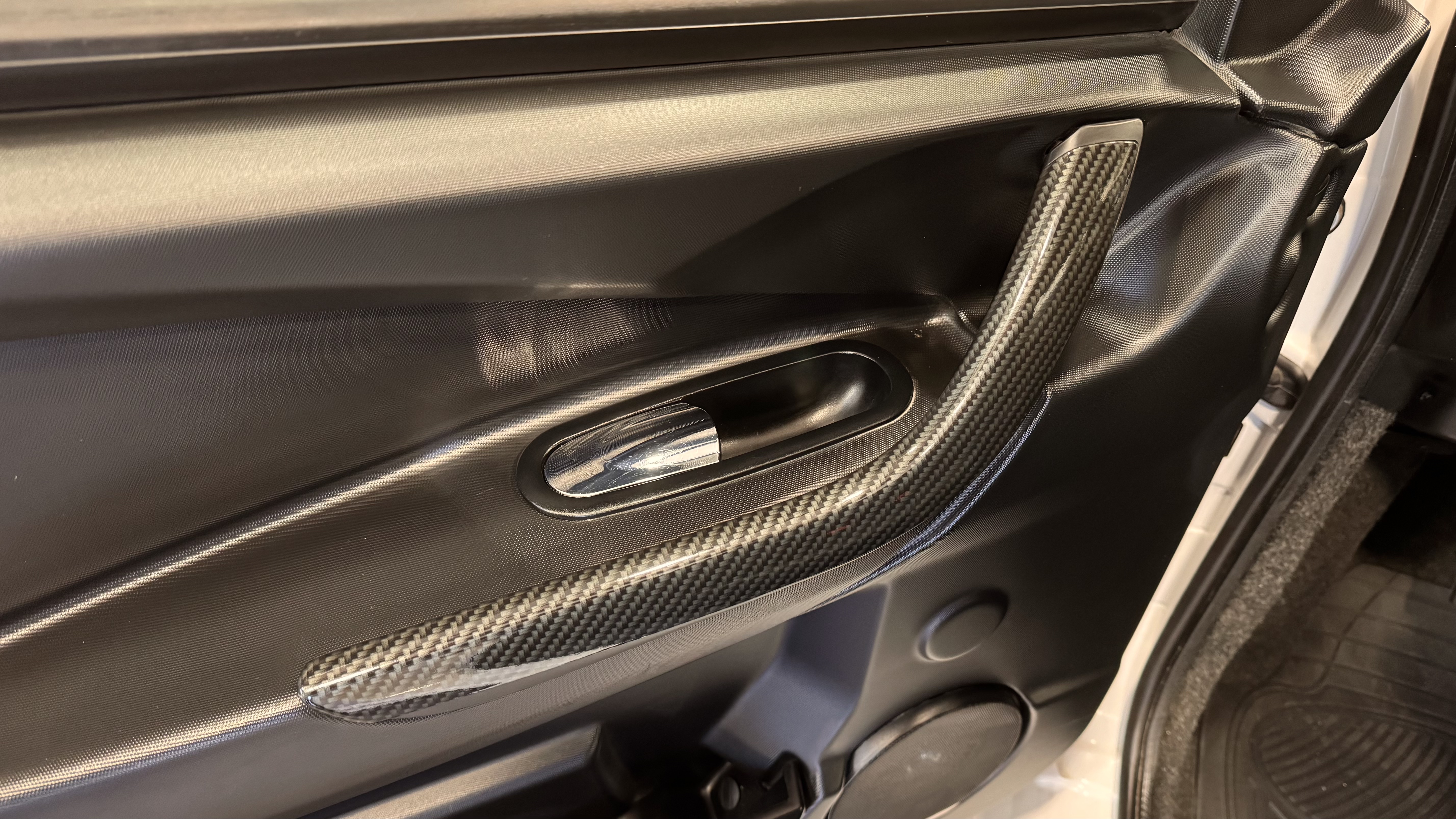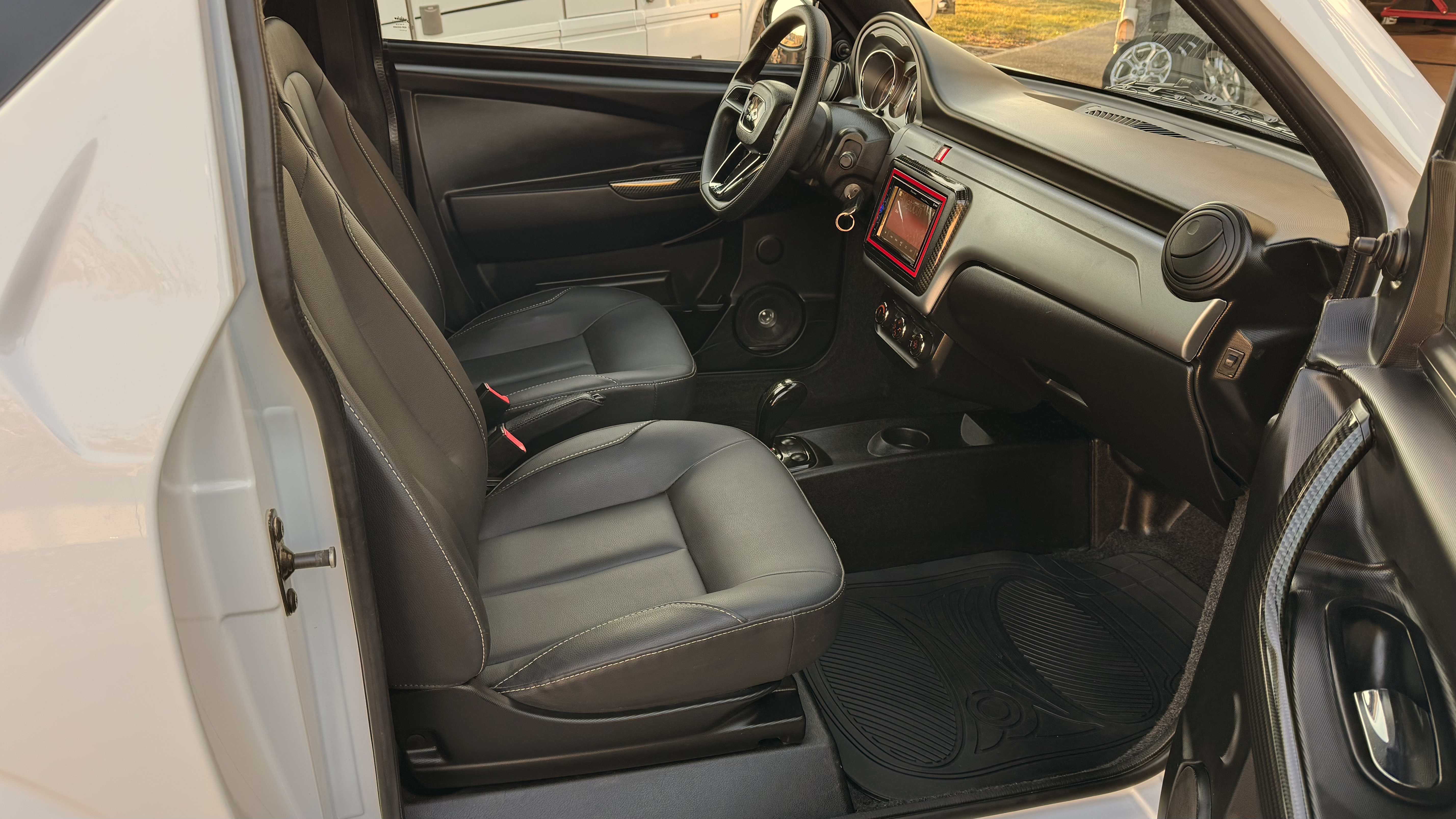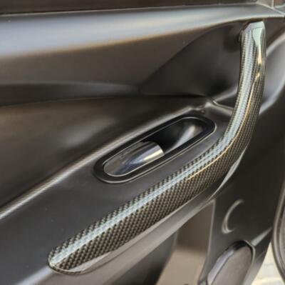 Biilen har fått ett sportigare utseende med kolfiber folie samt röda linjer, både interiör och